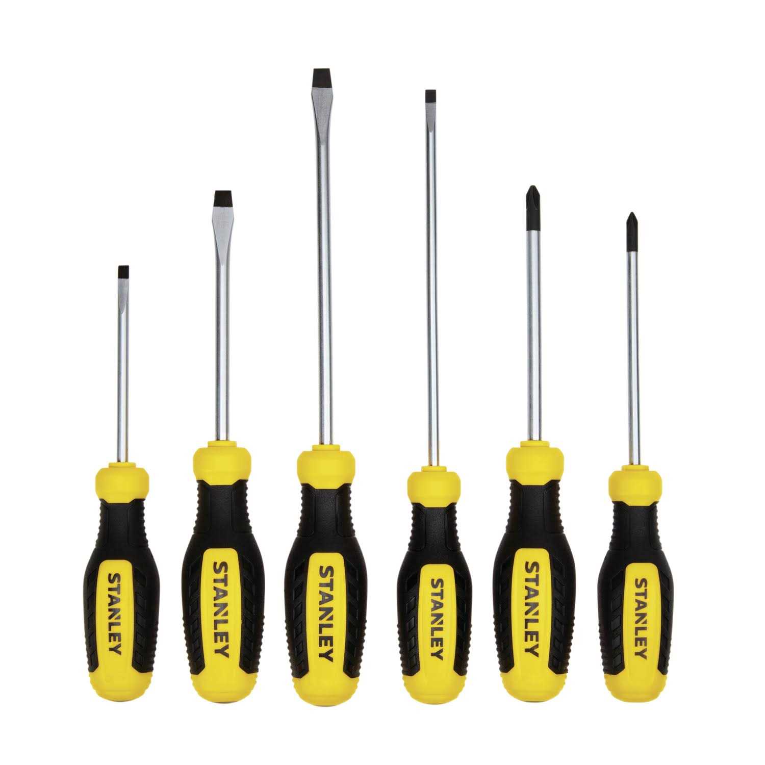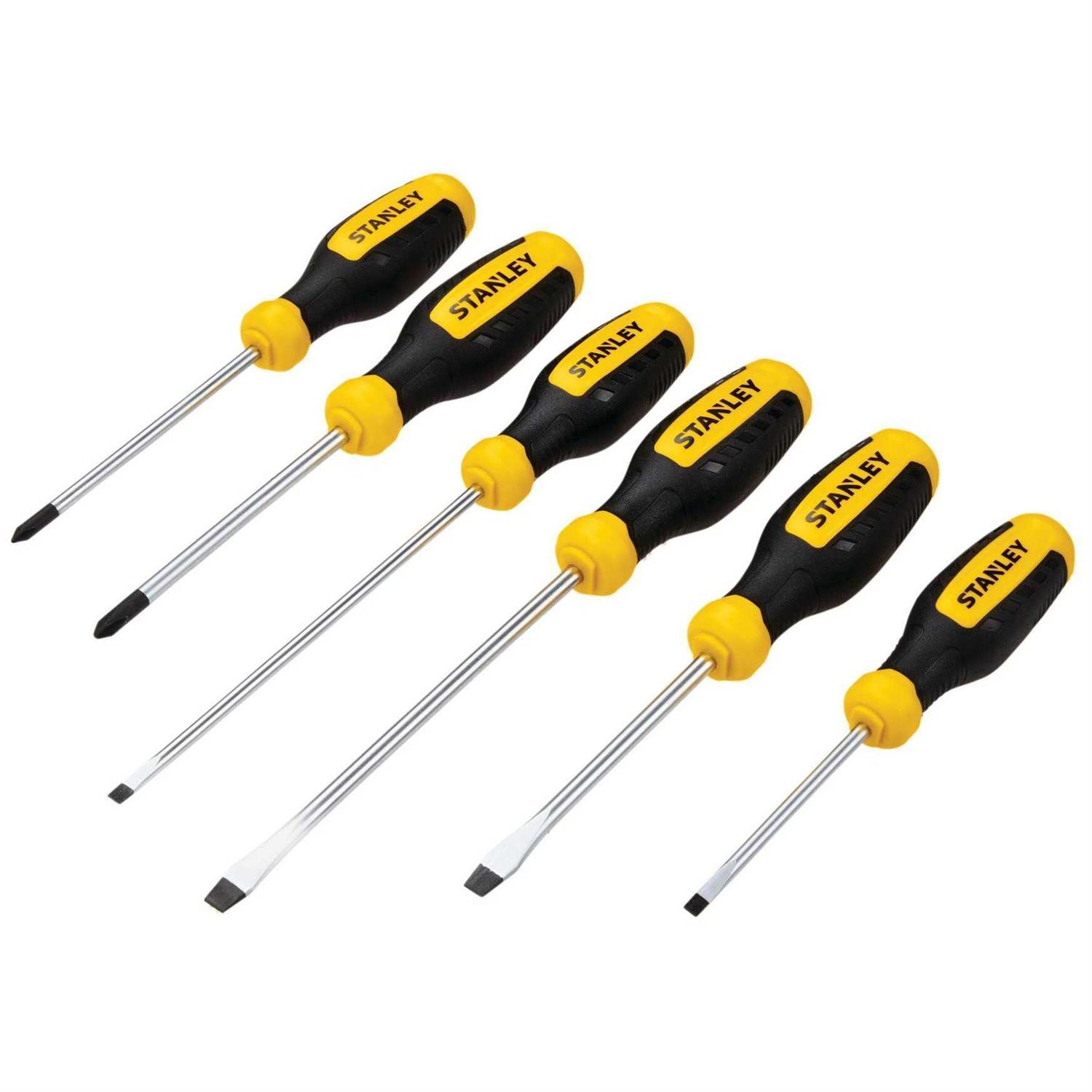 SKU 32148435-Equip your tool box with six of the most popular standard, cabinet and Phillips fluted screwdrivers. With the STANLEY six-piece screwdriver set you’ll be ready to tackle a wide range of fastening projects. Featuring hardened tips and slip-resistant, ergonomically designed handles, you’ll find yourself reaching for these tough screwdrivers again and again.
