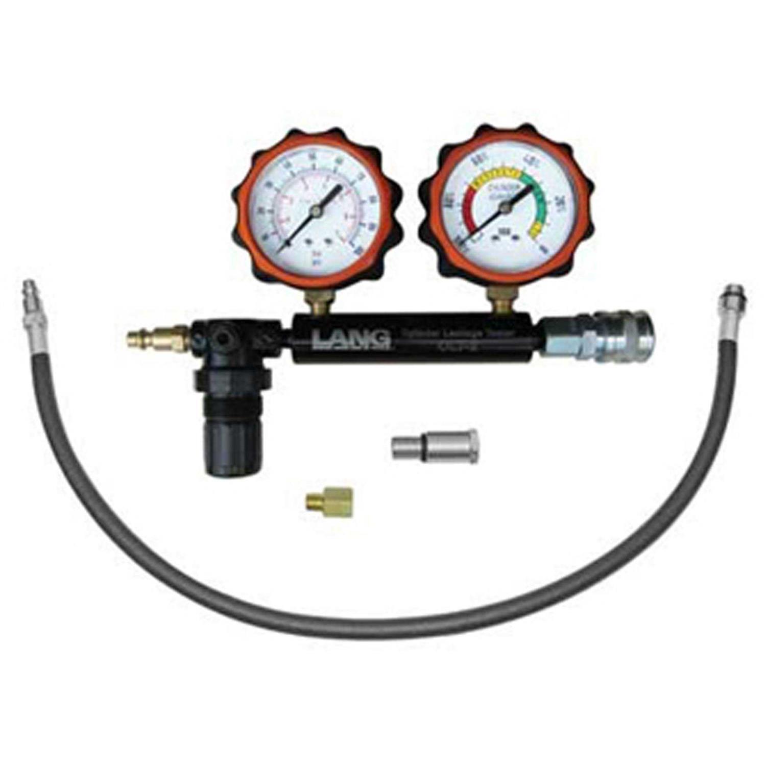 Zeros in on the exact problem if there is poor engine performance. Pinpoints bad valves worn rings cracked cylinder walls and blown head gaskets. Features a precision regulator with a combination M14 and M18 adapter on 26 hose assembly and has dual easy-to-read gauges which allows the mechanic to monitor input air-line pressure.