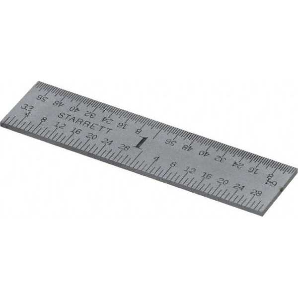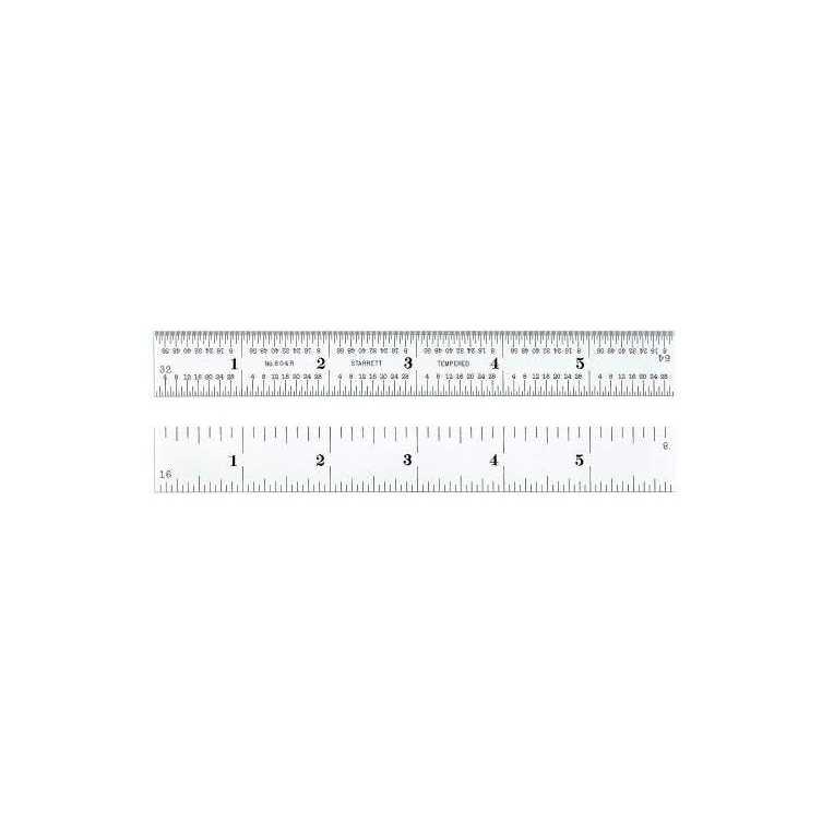 Starrett 5.1cm spring-tempered steel rules with Inch graduations feature a satin chrome finish. Graduations at 8ths, 16ths, 32nds, 64ths allow for quick reading. Features single row of inch figures.