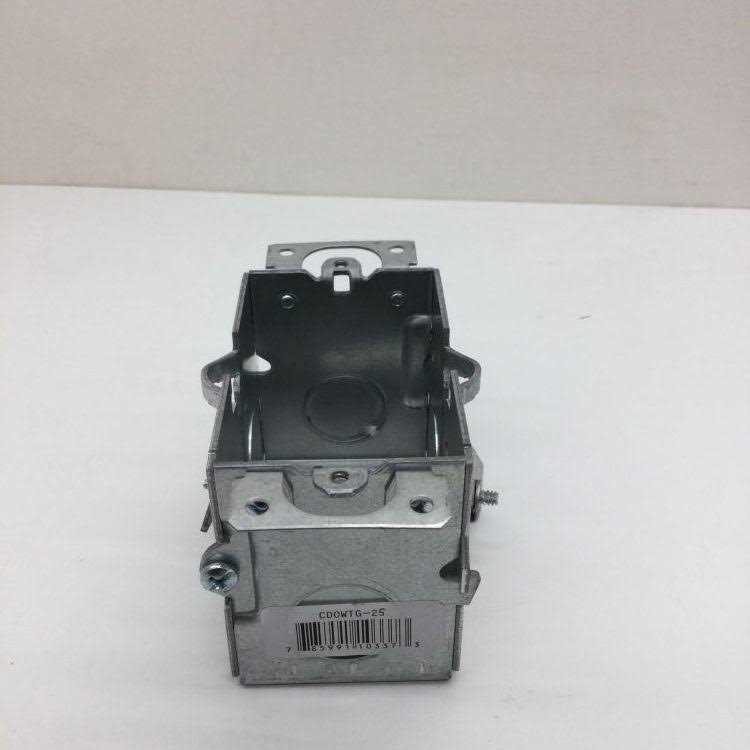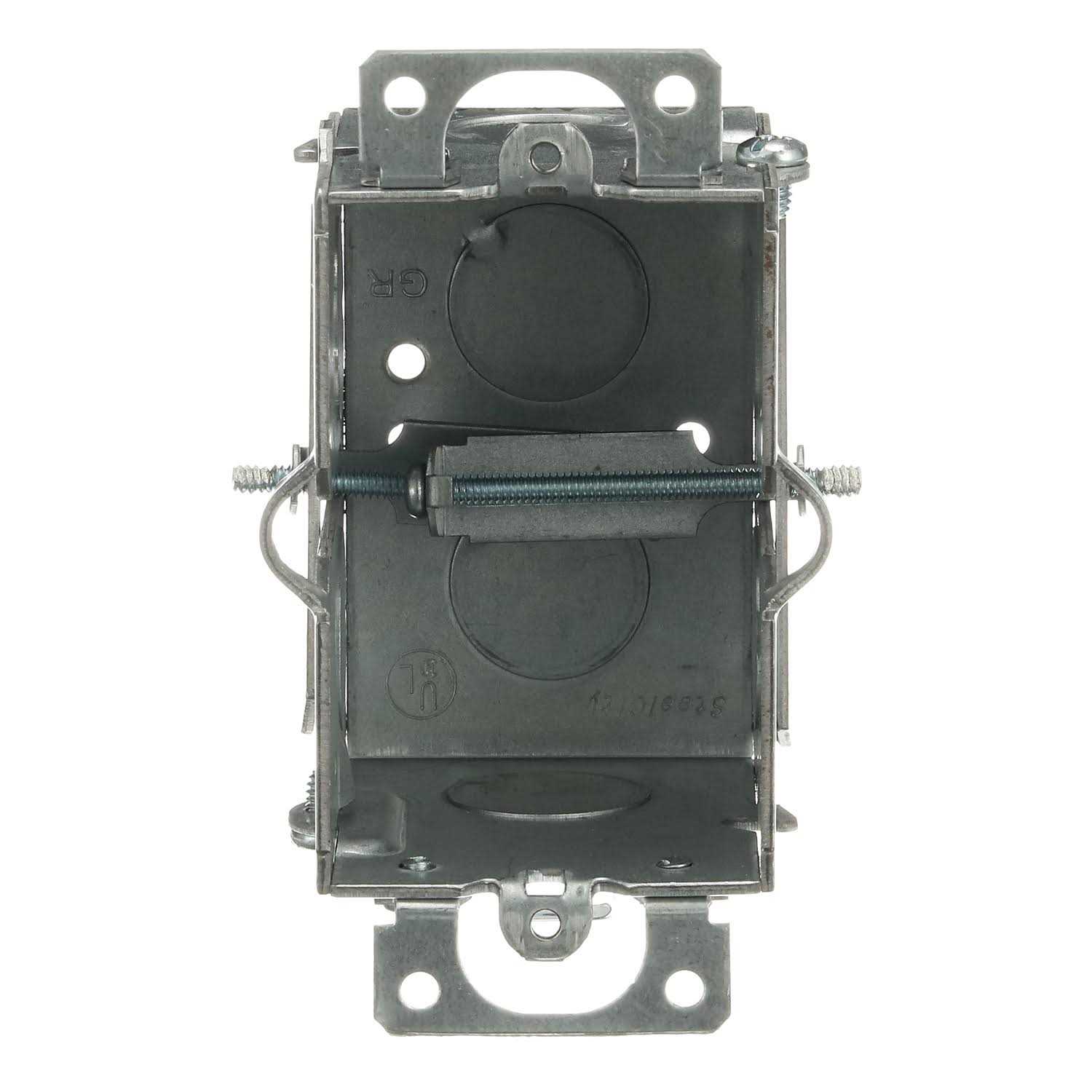 This switch box has capacity of 12.5-Cubic-Inch. It is ears mountable. Box is adjustable to any wall covering. It accommodates high- and low-voltage applications. This box allows to easily remove while enabling inner wall access. It is suitable for use with conduit. Switch box is UL listed.