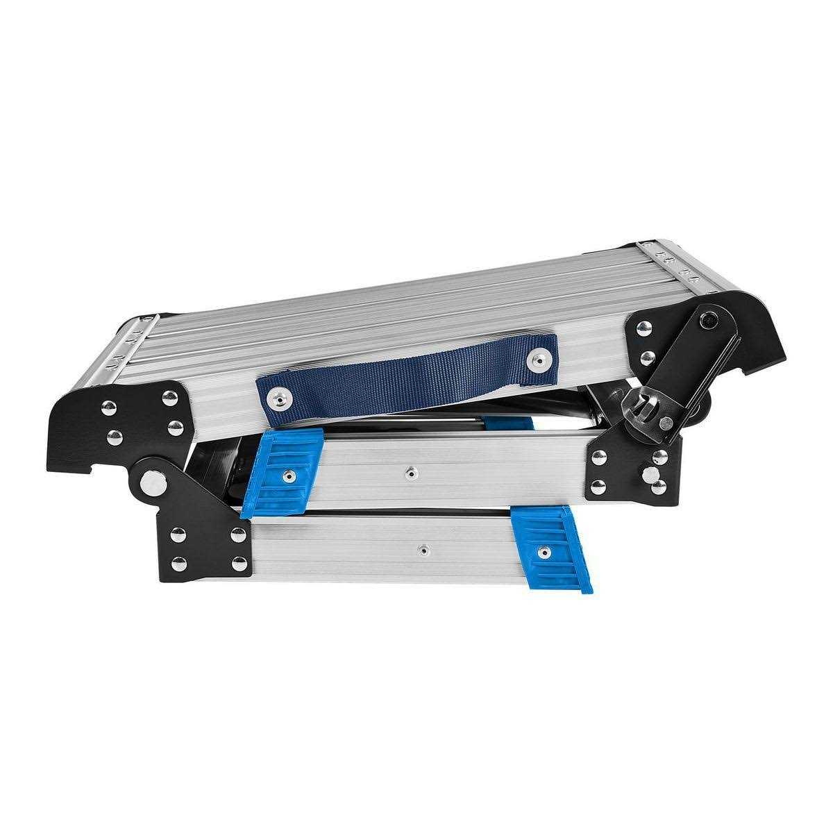 This sturdy working platform supports up to 375 lbs. When the job’s done, just fold the working platform up and take it away with its convenient carry handle.