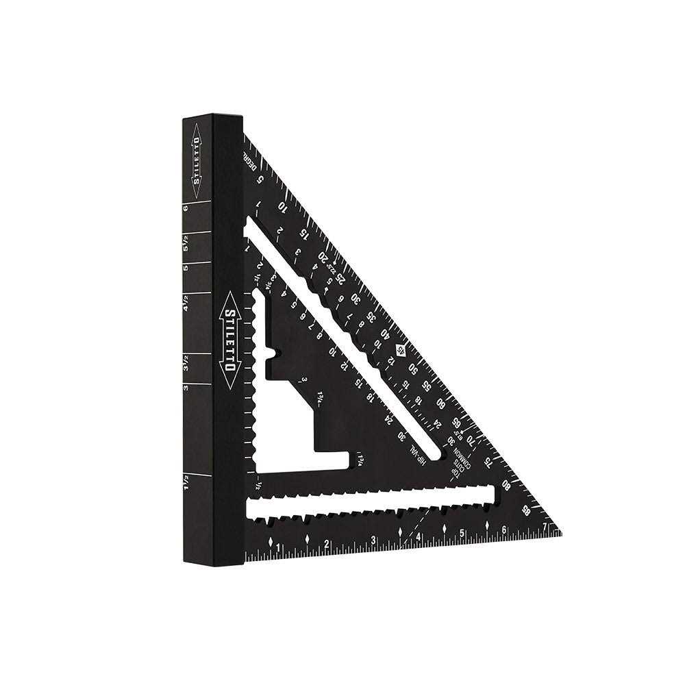 The Stiletto 7” Carpenter Square (STSQ7) is designed with more layout notches to help you build faster. Additional notches aid in laying out 2’x6′ material, ripping boards, and marking rafter pitches. The Bomber Cutout allows for repeatable stud measurements, while the bottom heel markings provide marking versatility. The 7” Carpenter Square is fully machined, with an anti-glare finish and the most durable coating.