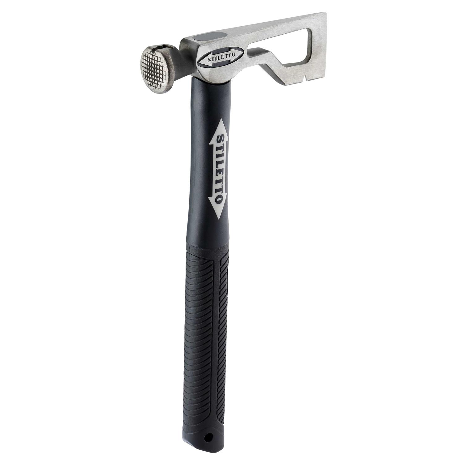 The Stiletto DryAxe9F is a 9 oz. Titanium Milled Face Hammer with a 13 in. Curved Poly/FG Handle. The Hammer has a Drywall Axe design and Stiletto’s signature Magnetic Nail Starter. The DryAxe9F has the comparable striking force of 24 oz. Steel hammer and is recommended for residential framing and remodeling. Stiletto Tool Company has been synonymous with high quality hand tools dating back to 1849. With its long history and strong reputation, the brand has evolved into the modern day standard for innovative, lightweight, ergonomic, productive, and professional tools. Titanium is 45% lighter weight while providing the same striking force and strength as steel. Titanium tools also produce less recoil shock which helps reduce carpal tunnel syndrome. The combination of these features means less down time, more productivity, and most importantly less pain while working.