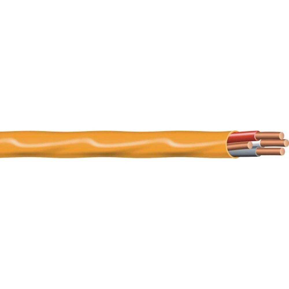#10 AWG Residential Wire for Outlets, Switches and Other Loads Copper (Cu) Conductors For Dry Locations up to 90 degrees Celsius or 194 degrees Farenheit. For Exposed and Concealed Applications. 600-Volt Maximum with an Allowable Ampacity of 30 Amps Equivalent to Romex NM-B – Color of Wire May not be the Same as the Picture Shown. Color : Orange Size : 100 ft Applications: Non-metallic sheathed NM-B cable is used in normally dry installations in residential wiring, as branch circuits for outlets, lighting and other residential loads. Its applications are outlined in NEC 2008 and NEC 2011 Article 334. NM-B is rated at 600 volts and although it is rated at a conductor temperature of 90C dry , its ampacity is limited to 60C according to the NEC 2008 and NEC 2011. It may be fished through masonry or tile walls, where not exposed or subject to excessive moisture or dampness. NM-B cables are LEAD FREE and RoHS compliant. Standards: Meets or exceeds all applicable ASTM specifications UL Standard 83: Thermoplastic Insulated Wires and Cables UL Standard 719: Non-Metallic Cables Federal Specification A-A-59544 and requirements of the NEC Voltage rating – 600 volts Construction: Insulation:Color coded polyvinyl chloride (PVC) compound with a nylon covering meeting the required thickness of Type THHN. Conductor insulation is rated 90°CC Sheath:30 mil color coded PVC sheath rated 90°CC is applied over the completed assembly Specifications: Size:#10 AWG Number of Conductors:3 PVC Insulation Thickness:0.51 mm / 0.020 inches Ground Wire Size:10 AWG Nylon Thickness:0.100 mm / 0.004 inches Nominal Cable Dimensions: 10.9 mm x 0.43 inches Weight per Foot: 0.163 lbs Allowable Ampacity: 30 Amps