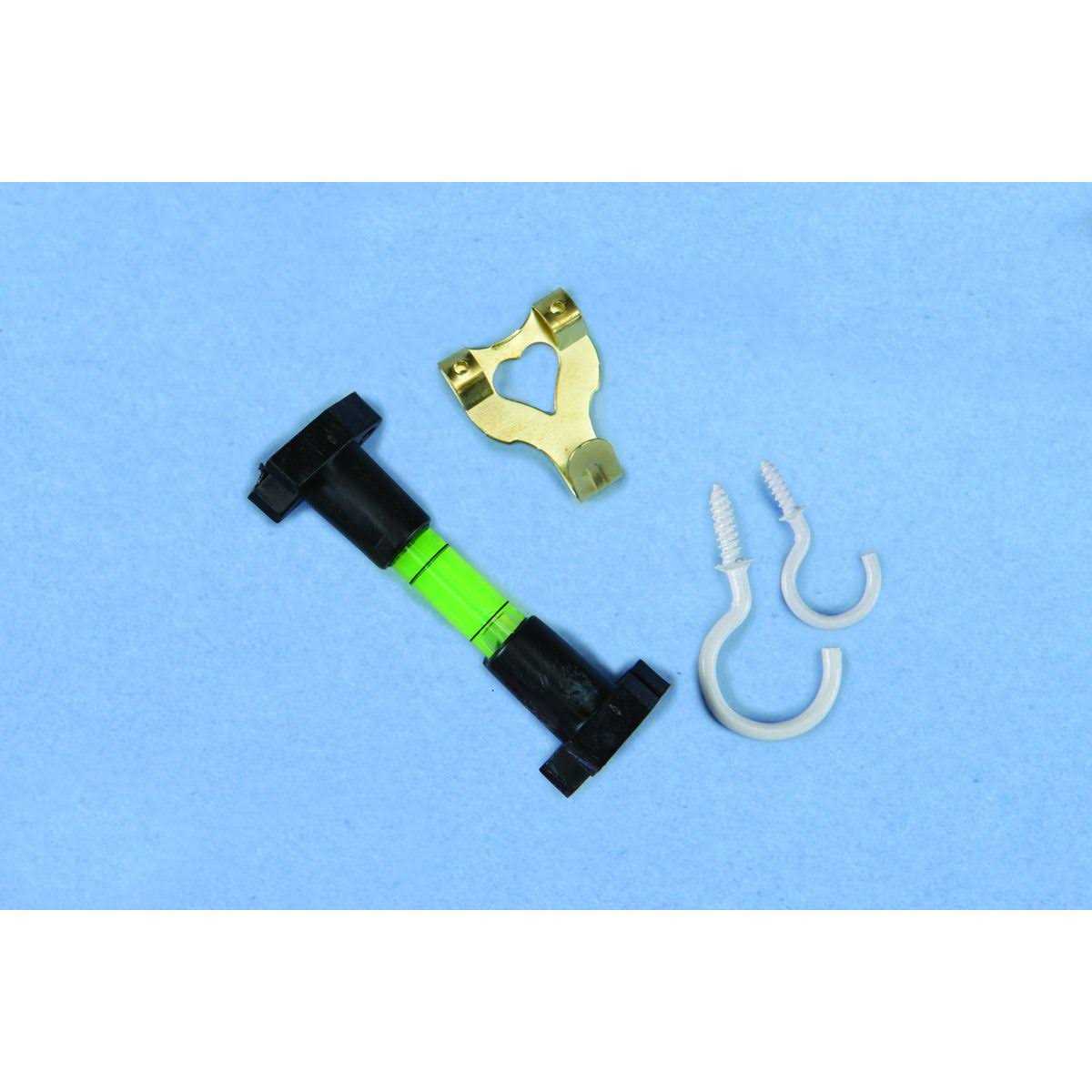 This complete kit contains enough picture hangers and mirror hangers for the needs of an entire household! The set of picture and mirror hangers comes with a line level to ensure your frames are perfectly straight each and every time.