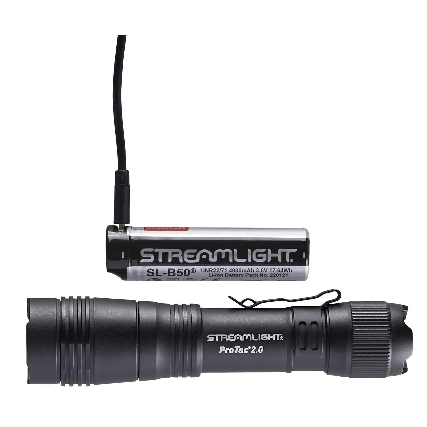 High performance light in the palm of your hand. The rechargeable ProTac 2.0 produces 2,000 lumens without sacrificing run time. Powered by the new SL-B50 battery pack that charges inside or outside of the light using a USB-C cord. 2,000 lumens on high, 262 meter beam distance. Multi-function, push-button tail switch for momentary/constant on operation. High/Medium/Low/Strobe modes and TEN-TAP programming to choose your preferred operating mode. Durable aluminum construction, IP67 dust tight, waterproof and impact-resistant to 2m.