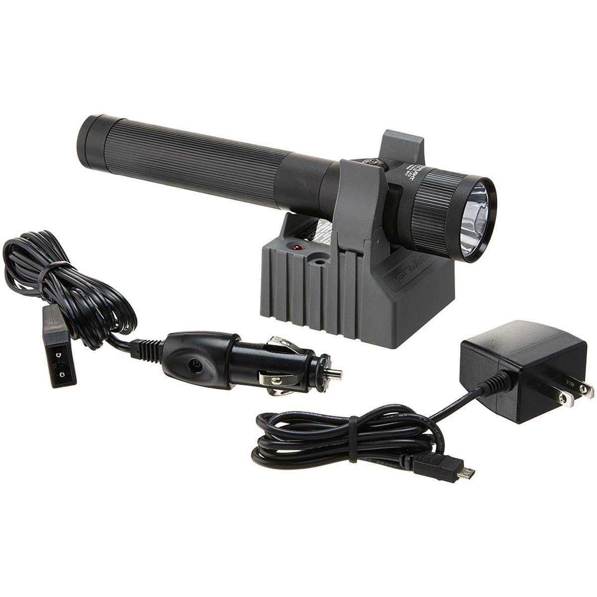 With Streamlights Stinger DS DC LED Rechargeable Flashlight, you’ll never have to worry about whether or not you’ve got extra batteries on hand. Its integrated, rechargeable 3.6-Volt nickel-cadmium battery can be charged again and again up to 1,000 times and does so in just 10 hours using the charger docking station, 120-Volt AC charging cord or 12-Volt DC charging cord (all included), as well as Streamlights PiggyBack charger (sold separately). Shockproof C4 LED delivers a 50,000-hour lifetime that operates up to two hours on high (350 lumens), 3.75 hours on medium (175 lumens), 7.25 hours on low (85 lumens) and 5.5 hours on the strobe setting. Dual-switch technology allows you to select mode of operation through the independently operated tail-cap or head-mounted power buttons. Rugged polycarbonate lens features a scratch-resistant coating that protects the internal deep-dish parabolic reflector, which casts beams as far as 310 meters. Ultratough machined aircraft-grade aluminum body with no-slip rubberized grips. Anti-roll ring included. Impact-resistant to one meter. IPX4-certified for water resistance. Battery charge indicator.
