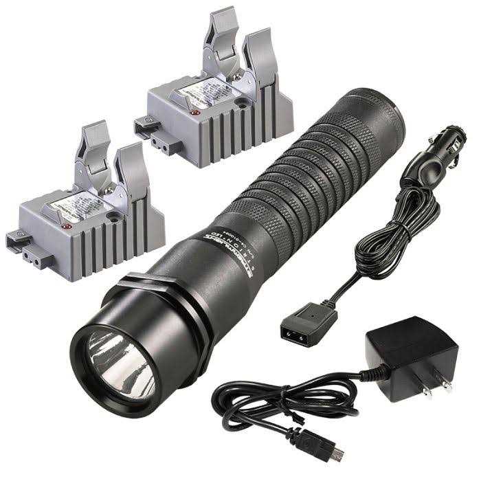 Streamlight 74300 Strion Tactical Rechargeable LED Flashlight without Charger, Black Rechargeable, ultra-compact and powerful, the Strion LED offers three variable intensity modes, strobe mode and the latest in power LED technology. Streamlight 74300 Strion Tactical Rechargeable LED Flashlight without Charger, Black. Features: Multi-function, push-button tactical tail switch. One-handed operation of momentary, variable intensity: high, medium, low, or strobe modes. Light Output: High-8,800 candela (peak beam intensity), 160 lumens; Medium – 4,400 candela (peak beam intensity), 80 lumens; Low – 2,300 candela (peak beam intensity), 40 lumens Optimized electronics provides regulated intensity. Run times: High – Up to 2 continuous hours; Medium – Up to 4 continuous hours; Low – Up to 7.5 continuous hours; Strobe – Up to 5.5 continuous hours. Lithium ion battery is rechargeable up to 500 time.