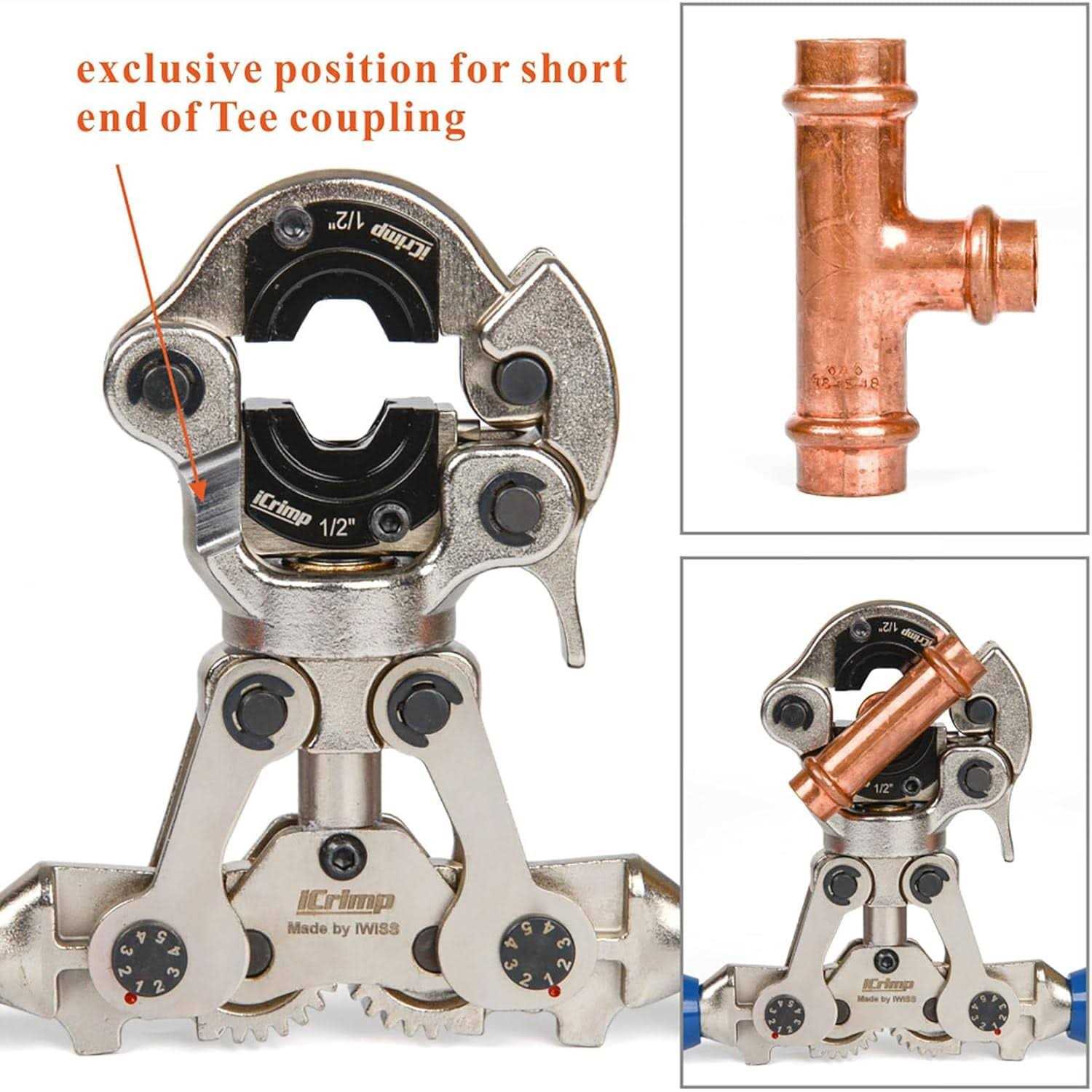 IWS-1632AF is designed to press crimp 1/2&3/4&1-inch copper fittings. With 5 tons of manual crimping force in your hands you can be assured on every crimp every time. This tool is capable of flame free connections to copper press systems in under 5 seconds. Pressing copper eliminates the time consuming process of soldering and brazing.It can be used for Viega,MrPex and other copper connection. *Easy interchangeable jaws, change effortlessly from different sizes & systems in seconds *No batteries or AC power to worry about*Fully submersible tool for those wet jobs, crimp underwater*Secure crimping in seconds; Automatic locking of pressing tongs *Rotating 360 degree head; Extendable handles for improved leverage *Creates leak-free connections ,No more brazing, soldering or flaring *Safe Handling with slip-proof rubberised handle grips; Easy two handed operation *Come with Heavy-duty carrying case and one Wrench *Save plumbers valuable time and money in the installation of copper pipe and fittings. DO NOT ADJUST WHEN YOU RECEIVE IT,IT WAS ADJUSTED ALREADY BEFORE SENDING! What you will receive: 1 x IWS-1632AF Crimping Tool3 x Interchangeable jaws (1/2″,3/4″ and 1″)1 x Wrench 1 x Plastic Case ABOUT IWISS IWISS was founded in 1990 as a family owned crimping tool manufacturer. Today IWISS, through its 25 years endeavor, is a global provider of plumbing, heating, and domestic gas solutions for residential, industrial, municipal, and commercial settings.