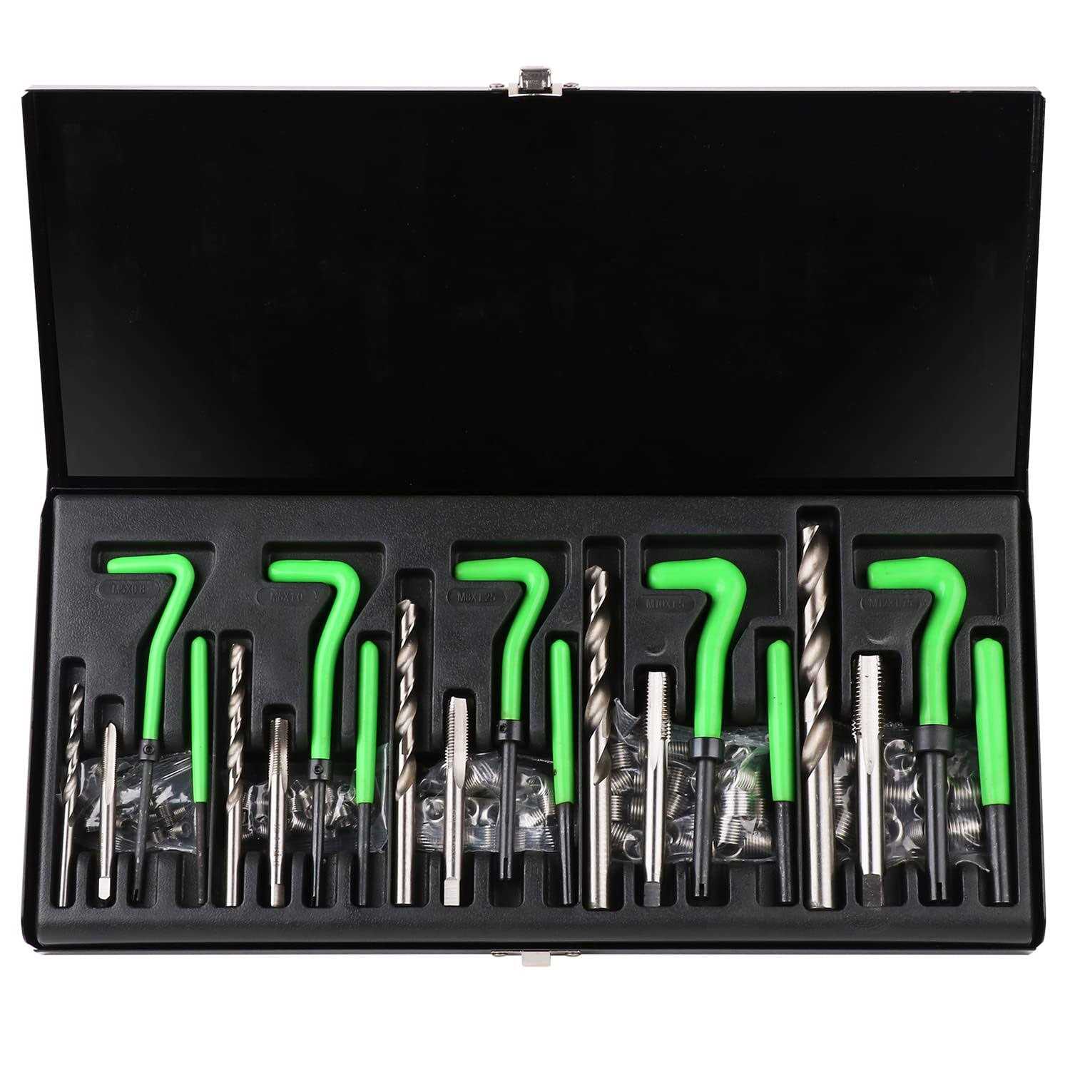 SWANLAKE 166pcs Thread Repair Tool Kit,HSS Drill Helicoil Repair Kit Metric M5 M6 M8 M10 M12