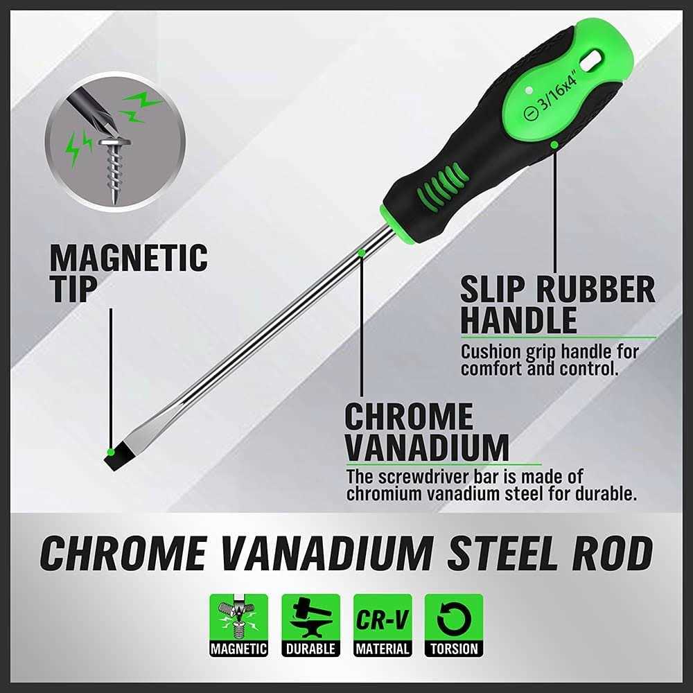 • Magnetized tips improve handling and manipulation of screws.