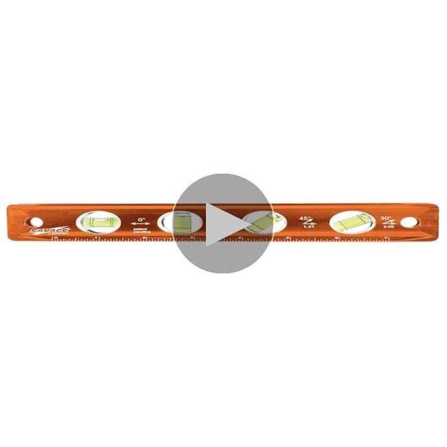 Torpedo level. Designed for every tradesman and carpenter. Billet aluminum frame house 4 leveling vial at 0Âo 90Âo 45Âo and 30Âo. The 30Âo vial is perfect for correctly bending pipes. Exclusive sealed vial caps eliminate vial movement for the life of the tool. Brightview milled vial windows reflect light back into the vials for improved readability. Precision laser etched SAE metric rules and offset scales. V-groove edge accepts round stock and pipe up to 10″ diameter. 4 Neodymium magnets for superior hold. 9″ Length.