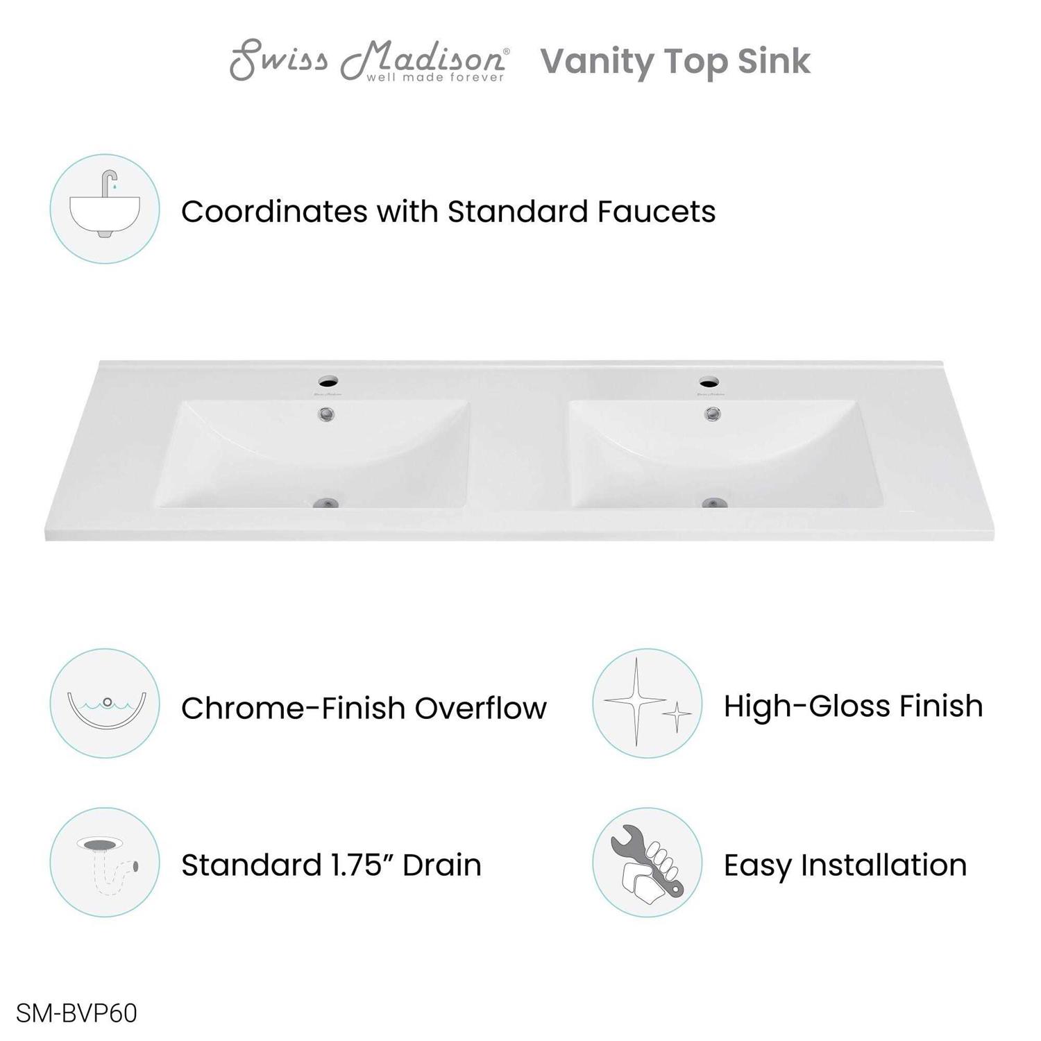 Swiss Madison 60 Vanity Top Bathroom Sink