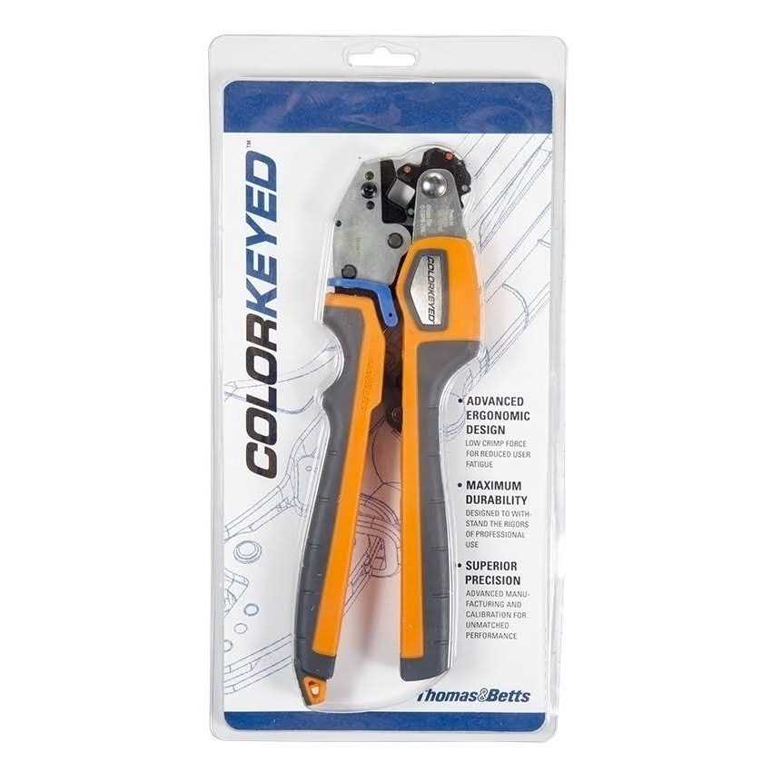 The Thomas and Betts TBM45S is a mechanical compression crimping tool that crimps the wide range of 8 to 2 for copper lugs and 10 to 6 for aluminum lugs. The Shure Stake mechanism ensures a properly completed crimp each time. The color coated die wheel rotates into position for a proper dies nest while creating a diamond style crimp. The overloaded soft grip forms to any hand comfortably creating little to know slip while creating a crimp. Since 1930, Thomas and Betts has been supplying tools, dies and connectors. Today with more than 75 years experience in tools, dies and connectors, Thomas and Betts still sets the standard for innovation, quality and performance for application tooling. Rely on Thomas and Betts for labor saving features, user comfort and convenience, long service life and extraordinary value.