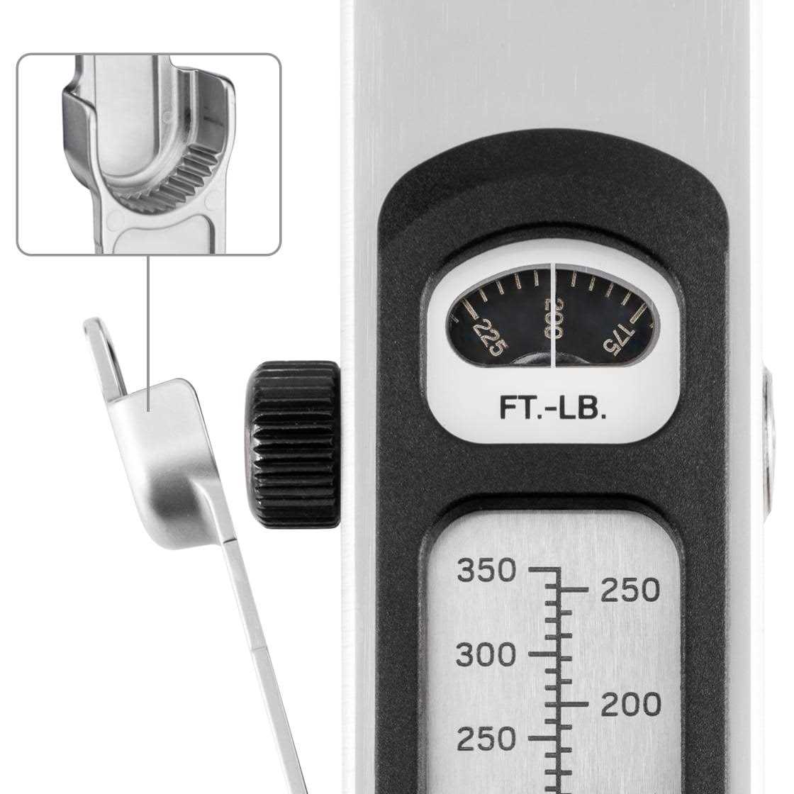 • Scale on the body of the wrench allows for quick conversion from foot-pounds to newton-meters.