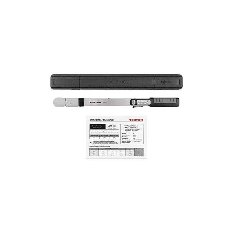 Torque Wrenches by TEKTON. Details:The TEKTON 1/2 Inch Drive Split Beam Torque Wrench is accurate to +-4% throughout its entire 40-250 foot-pound range. Each wrench is serialized and calibrated according to the ASME B107. The detailed test results are recorded on the included calibration certificate. Unlike other torque wrench designs, this wrench can be stored at any torque setting without losing accuracy.