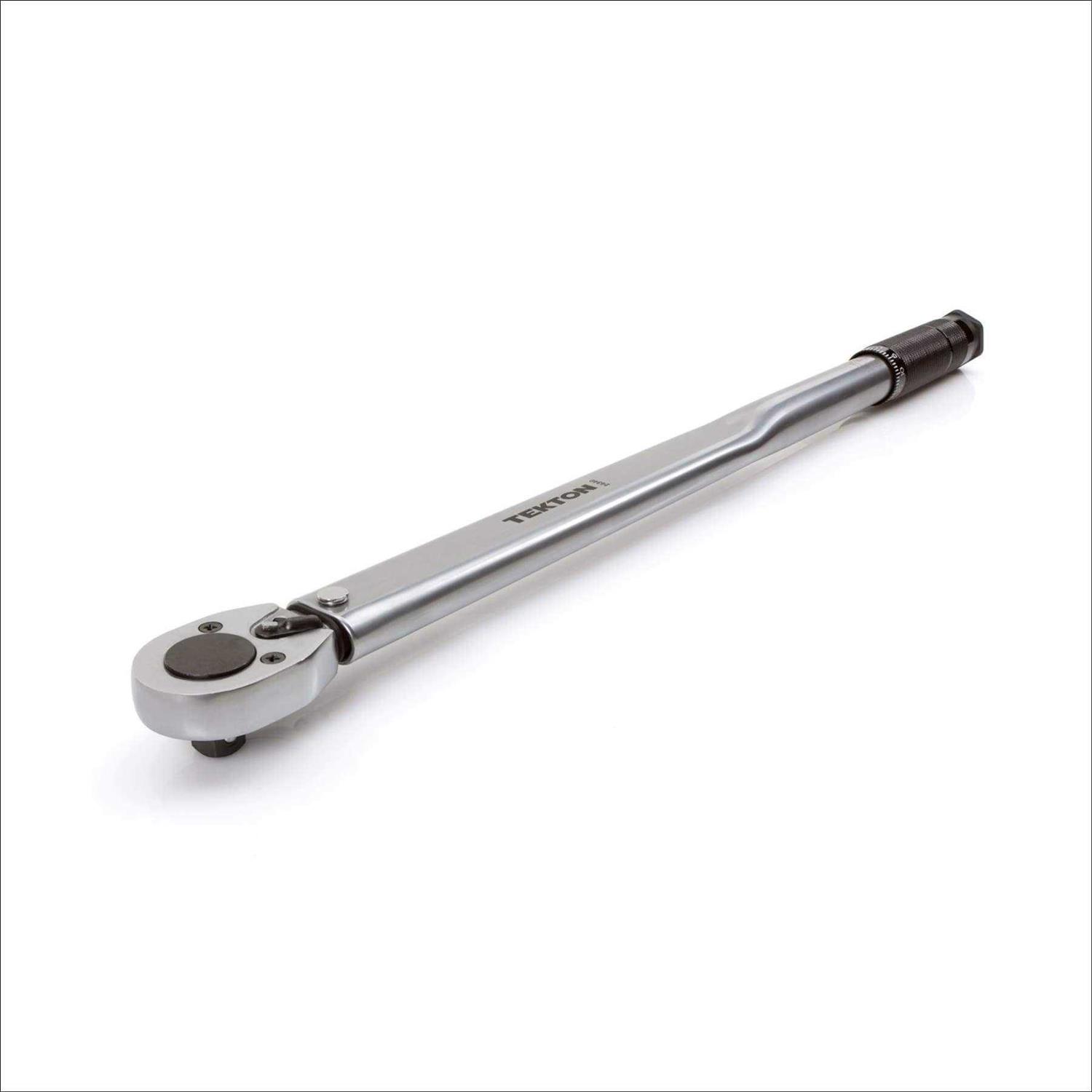 Calibrated to an accuracy of +/- 4%, the TEKTON 1/2″ Drive Click Torque Wrench lets you work with confidence, eliminating guessing and the common tendency to overtighten fasteners. Correctly tightening fasteners to a vehicle or equipment manufacturer’s torque specifications ensures parts are properly secured without being damaged. Simple and easy to use, this wrench has a reversible ratcheting head that drives fasteners in both directions and measures torque in the clockwise direction. To measure torque, set the desired value on the handle scale (foot pounds or Newton meters) and begin tightening the fastener. When the preset torque value is reached, a reliable mechanical operation inside the handle produces a click you can hear and feel, alerting you to stop applying force. Built for consistent performance and years of dependable service, the mechanical design doesn’t need batteries, and the all-steel construction has no plastic parts to break or wear out. IMPORTANT: This wrench is shipped pre-calibrated and ready to use. To help maintain calibration, store at its lowest setting of 25 ft.-lb. /33.9 Nm when not in use. Be sure to read and understand the operator’s manual, including all safety information, before first use.