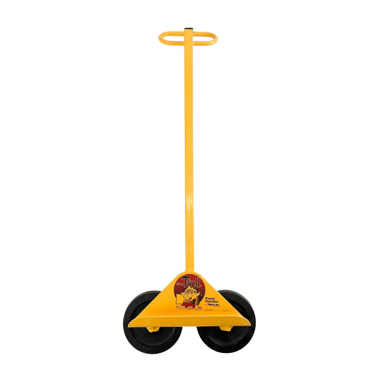 With the Troll on the job site there is no more dragging or sliding drywall on ends and edges. A simple, yet sturdy design saves on your back when moving drywall, plywood, and paneling around the job site. Supports a maximum loaded weight of 300 poundsthat lets you roll 1-2 sheets of drywall at a time. The Troll weighs less than five pounds and works great on long tables and doors. The dual 5-inch wheels easily roll over job site clutter and cords. With the Troll on the job site there is no more dragging or sliding drywall on ends and edges. A simple, yet sturdy design saves on your back when moving drywall, plywood, and paneling around the job site. Supports a maximum loaded weight of 300 poundsthat lets you roll 1-2 sheets of drywall at a time. The Troll weighs less than five pounds and works great on long tables and doors. The dual 5-inch wheels easily roll over job site clutter and cords.