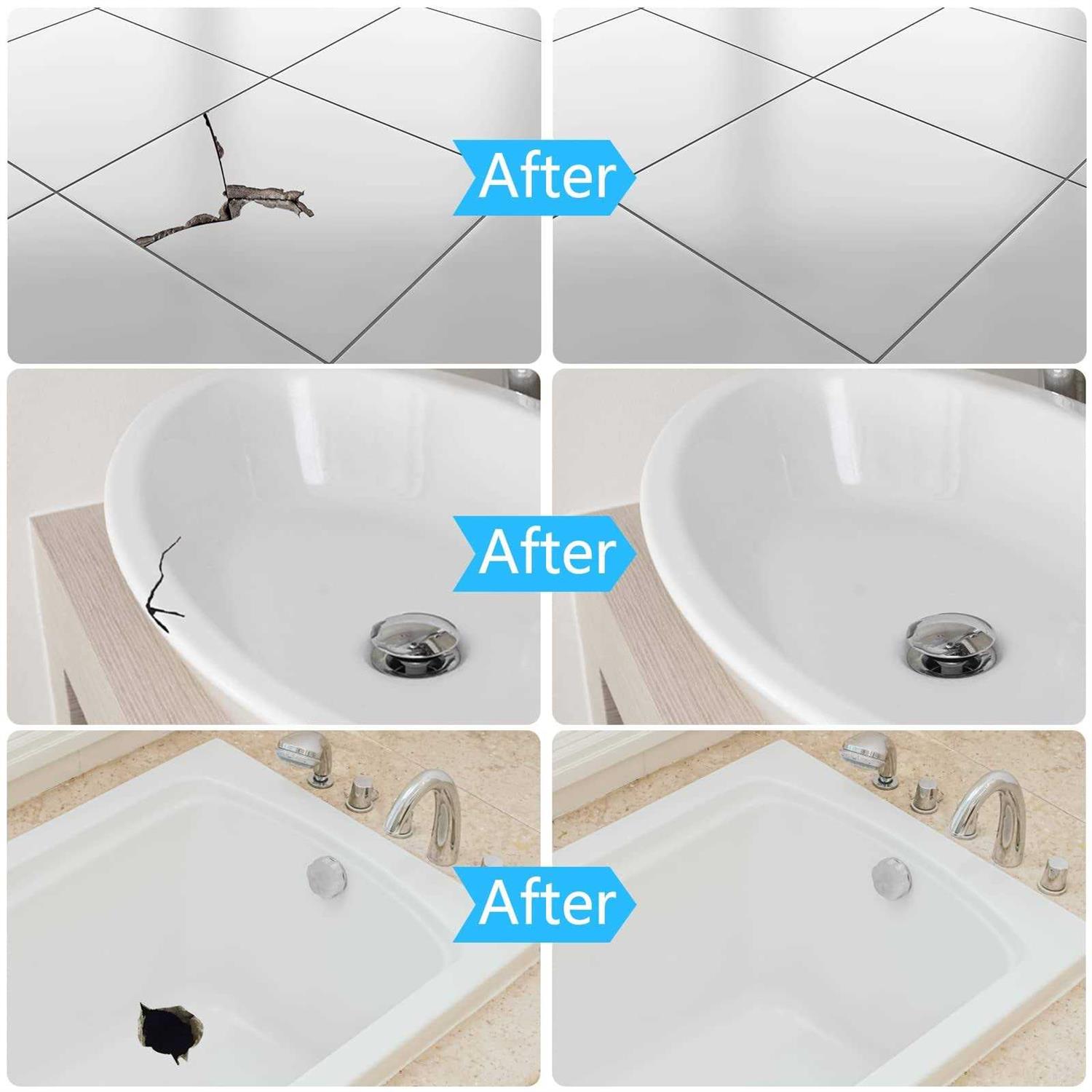 PERFECT FIBERGLASS REPAIR KIT; Our porcelain repair kit is super-adhesive to help you perfectly treat cracks, holes, dents, chips, worns and scratches on your sink, shower and tub. Works on ceramic sink repair, to fix acrylic bathtub damage , fiberglass shower, ceramics, porcelain, enamel. TUB REPAIR KIT WHITE; Tenee tub repair kit is the best option works well with any bathtub paint. Use our acrylic tub repair kit white to restore cracked ceramic, fiberglass, and porcelain shower sink. it will be almost entirely undetectable and last for years to come. PERMANENT DURABILITY; NON-TOXIC AND ODORLESS, safe for children and pets. Which is easy to apply, dries fast, and long-lasting stickiness after fully cured. Don’t wait for small dents and cracks to get worse, porcelain repair kit works seamlessly with any bathtub, this fiberglass tub repair kit is a must-have for any home and will save you time and money. SOLVE YOUR WORRIES; With our fiberglass repair kit for tub, you can easily and permanently remove such unsightly damage. It’s as glossy as porcelain tile paint touch up with the strength of a super epoxy tile gap filler. After restoration, makes the surface look renewed, restore your bathroom’s former glory. Just follow the instructions and you can repair your surface in minutes, no prior DIY experience required.