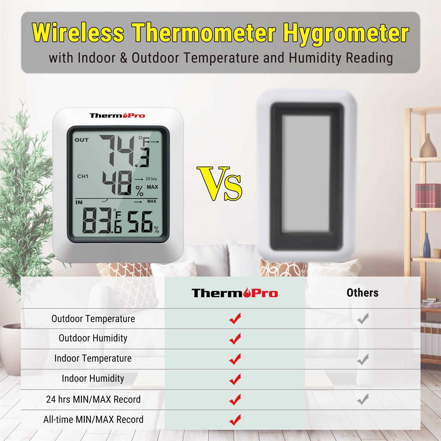 ThermoPro TP-60S Digital Hygrometer Indoor Outdoor Thermometer Humidity Monitor,
