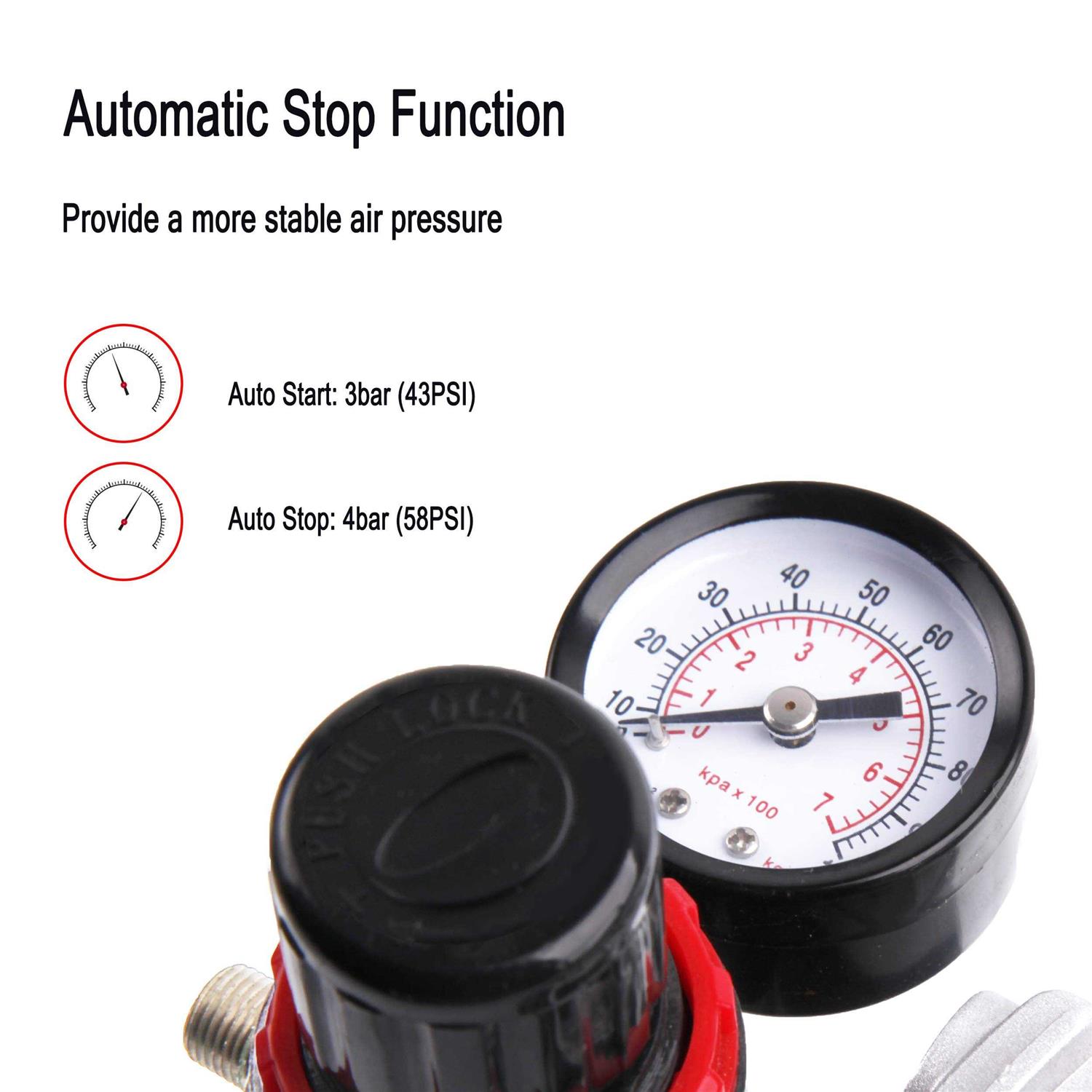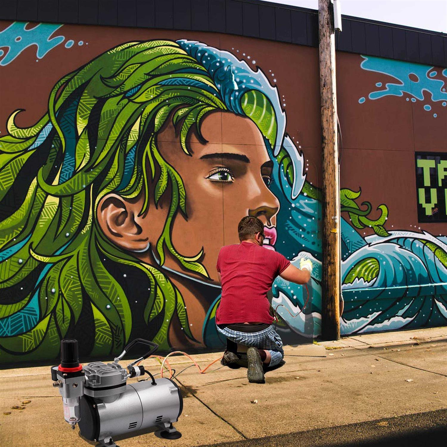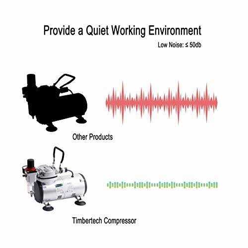 Professional Timbertech Airbrush Compressor with a Model AS18-2. Multi-Purpose High Performance Precision Airbrush with Automatic stop functionPremium Airbrush Model AS18-2 High Performance 1/6 hp Air Compressor with air filter water trap with pressure regulator along with cool down fans.Provides precise air adjustment control and clean, dry air because of it’s true diaphragm pressure regulator. Airbrush compressor commonly used for: hobbies, crafts, auto graphics, temporary tattoos, cake decorating, fine art, nail artGreat starter airbrush kit for beginners and students, as well as for advanced artists since it works excellent for most airbrushing applications and also with most types of paint spray media.