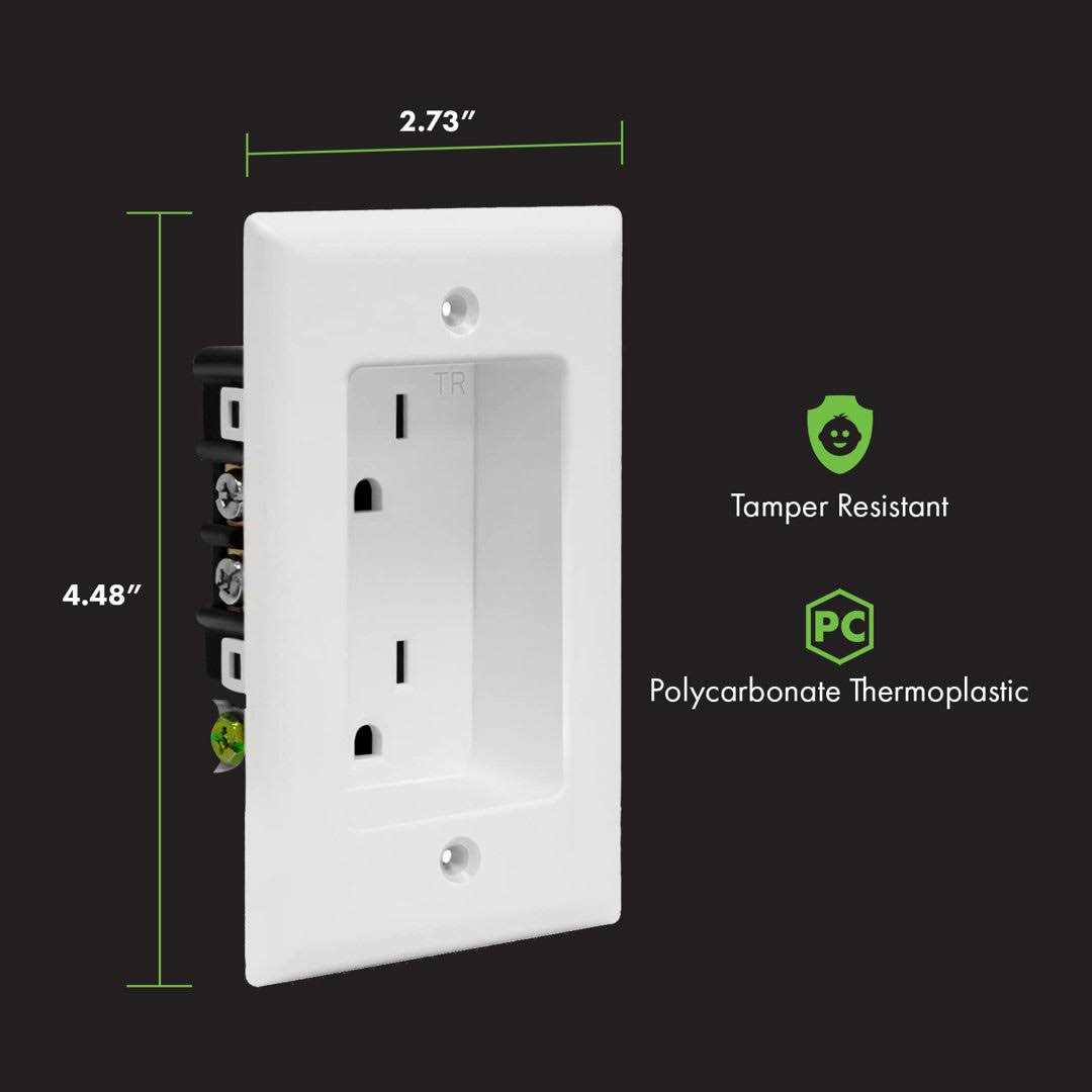 TOPGREENER 15 Amp 125 volt Recessed Duplex Receptacle Outlet TG15RD31-W3P