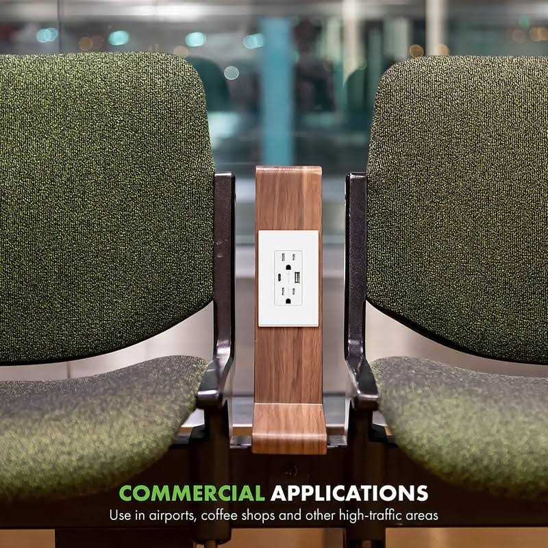 Standard Outlets by TOPGREENER. Details:The TOPGREENER TU21536AC 3.6 Amp Dual Port USB Outlet Tamper-Resistant receptacle is one of the most efficient charging solutions for the home and office. This 15 amp electrical outlet replaces any in-wall receptacle so that you can charge devices simultaneously and adapter-free. With one Type-A USB charging port, one Type-C USB charging port, and two tamper-resistant plug outlets, the TU21536AC is the charging solution that every modern home needs. The USB charging ports are equipped with IntelliChip technology, which reads the charging needs of connected devices to optimize charging efficiency up to 3A USB-C and 2.4A USB-A (for a total combined max output of 3.6A). This technology prevents the device from overcharging or overheating, allowing you to charge two devices simultaneously without risk of short-circuiting. This home charging outlet is rated to deliver up to 15A of power and it is perfect for the kitchen countertop, bedroom…