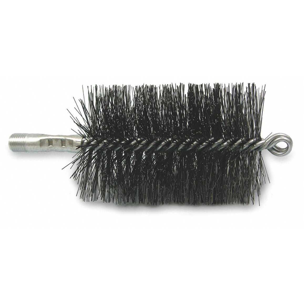 Fiberglass Handles Compatible with Product Type; Metal Handles Compatible with Product Type; 2ELE2 For Use With Extension (Merch); USA Country of Origin; Silver Handle Color; 1 Number of Pieces; Flue Brush Brush Type; 1/4″ NPS Handle Connection Screw Size; 3 in Brush Head Diameter; Yes Includes Handle; Fiberglass or Metal Handles For Use With; 4 1/2 in Brush Head Length; Tempered Wire Bristle Material; 0.25 in Handle Diameter; Male Handle Connection Gender; 7.5 in Overall Length; 2ELE1 For Use With Extension (Merch); 2VNA8 For Use With Handle (Merch); 2ELE3 For Use With Extension (Merch); Double Spiral/Double Stem Bristle Style; 2VNA5 For Use With Extension (Merch)