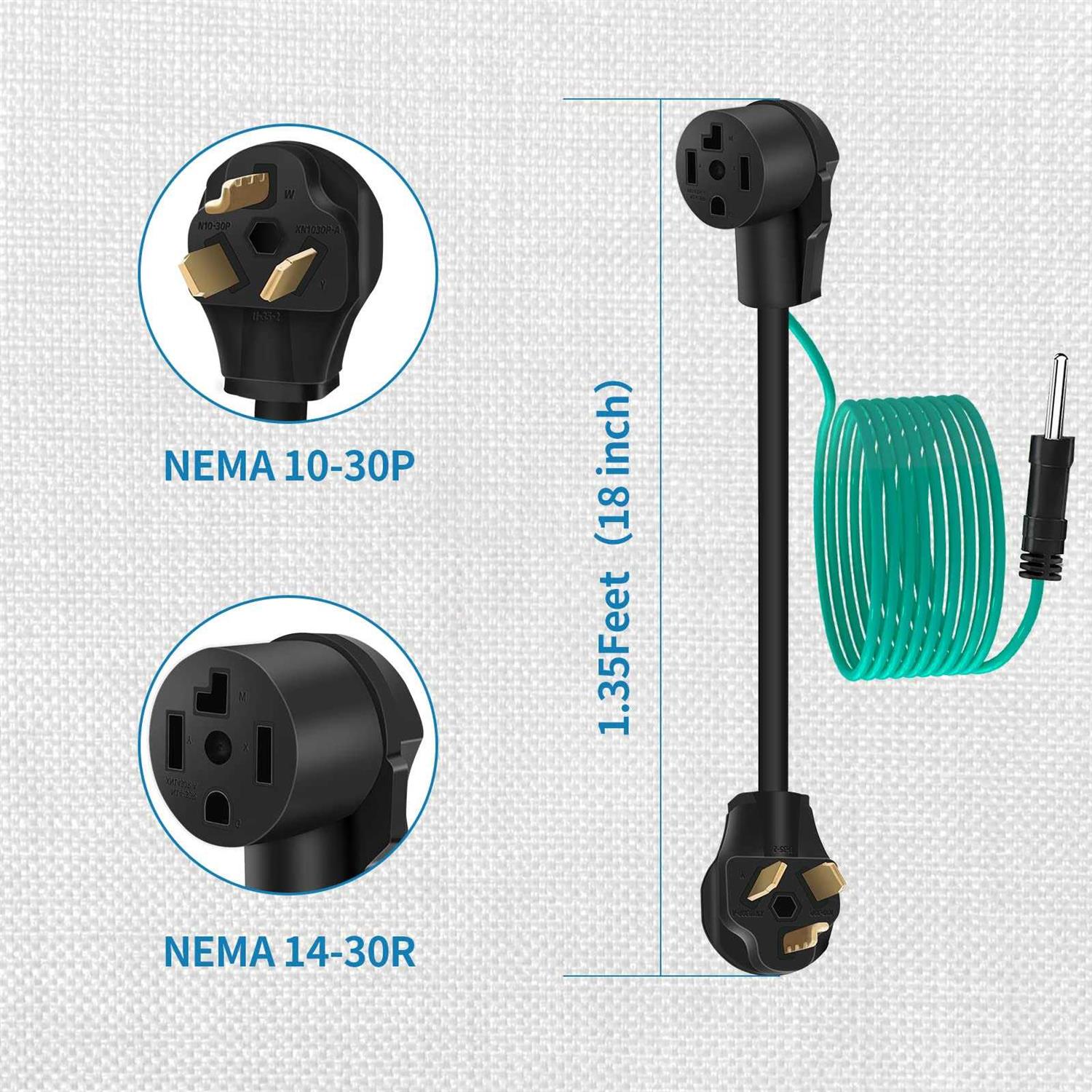 TOVEN-RV 4 Prong to 3 Prong Dryer Adapter, Dryer Convert Cord NEMA 10-30P Plug to 14-30R Receptacle with Safety Ground Wire 250V 30 Amp STW 10-awg,