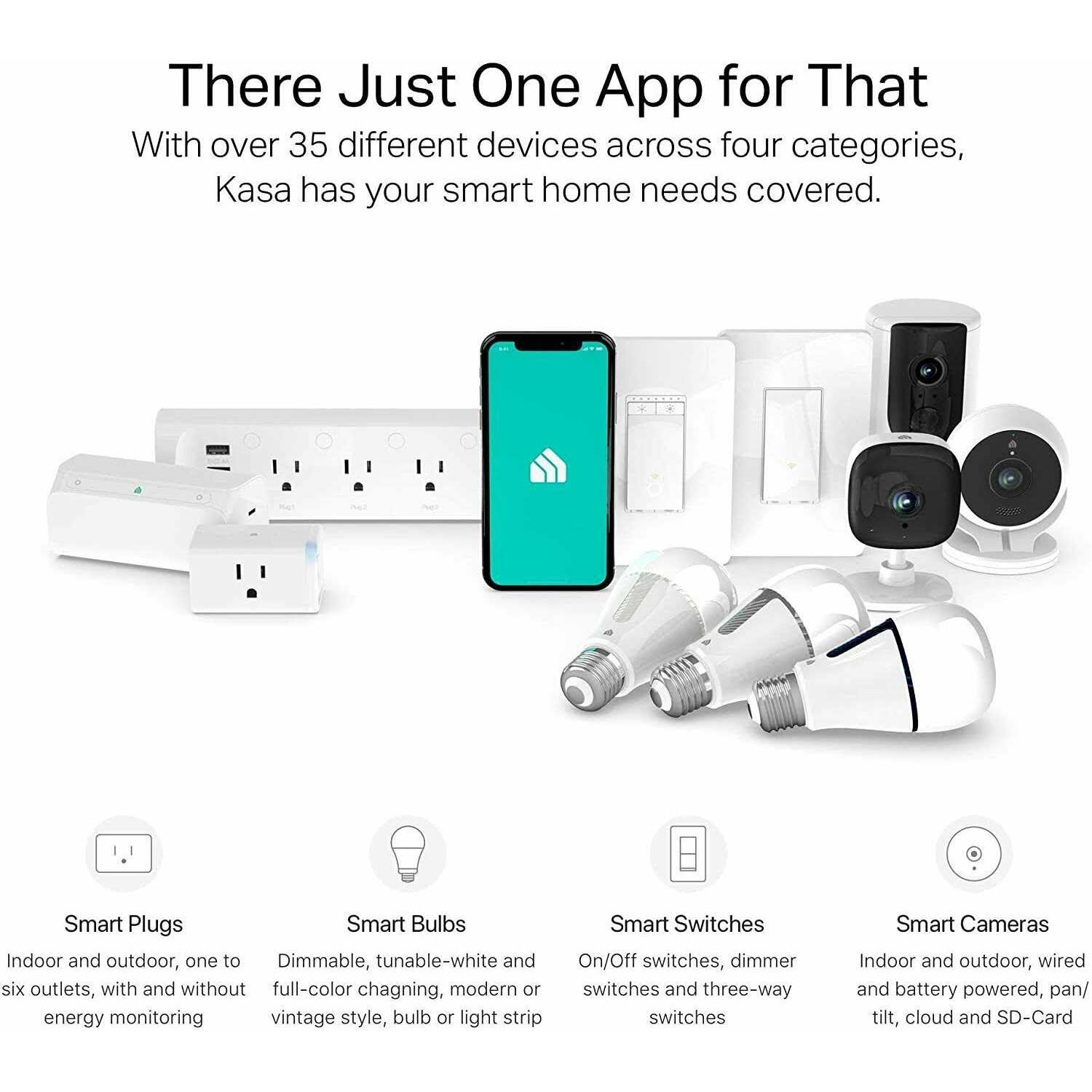 Easily turn on/off your lighting from anywhere in the world by a free Kasa App. Turn your lights, ceiling fans, and other fixtures off and on no matter where you are.