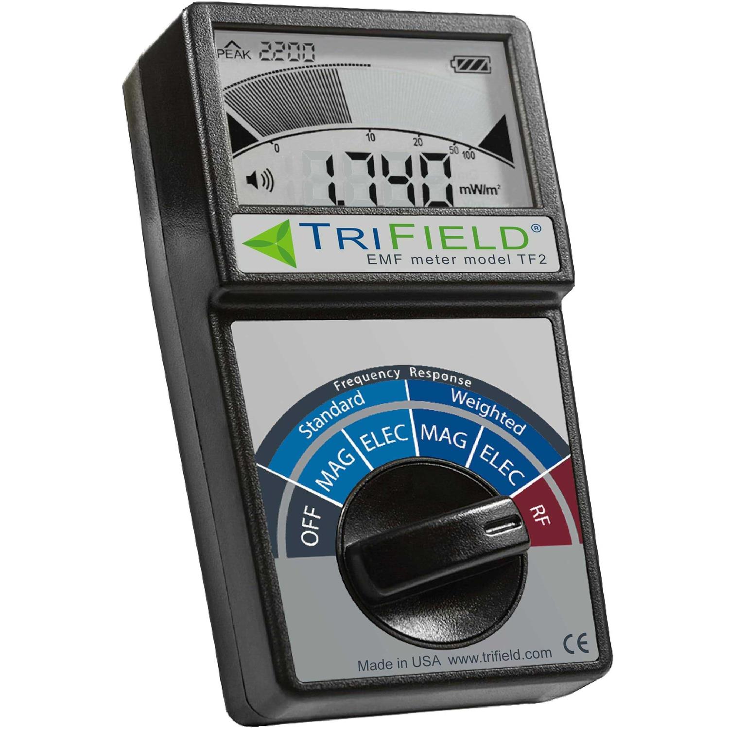NEW! From the makers of the original TriField Meter Model 100XE. The TriField EMF Meter Model TF2 is an AC gaussmeter, AC electric field meter, and radio power density meter in a single unit, that combines all the features needed for fast, accurate measurements of electromagnetic fields (EMF). In addition to standard AC measurement modes, a special frequency weighted mode will properly scale the magnetic and electric measurements to indicate the full magnitude of currents produced by each type of field inside the human body. Made in USA by AlphaLab, Inc.