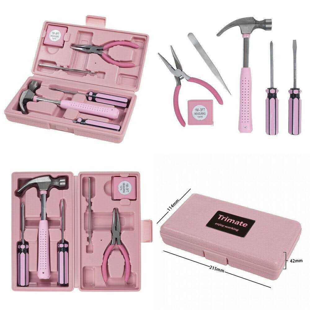 Trimate,PinkTool Set,Includes – Hammer, Screwdriver Set, Pliers (Tool Kit for The Home, Office, or Car)