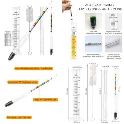Hydrometers by Haoguo. Details:Have you been bedeviled by inconsistent product when you home brew? Are you searching for a hydrometer that’s incredibly accurate, easy to read and friendly to the environment? Are you lacking some handy home brewing items such as a brush to clean your beer bottles? Then the Homebrew Helper Kit by Haoguo is For You! All You Need and More With 2 triple-scale hydrometers plus a 250ml marked test jar, our combo kit is exactly what a serious home brewer needs to scientifically ensure that their product is within parameters. Now all that’s left is to play around with the flavor profile to create a concoction worth putting your name on! Hydrometer Specifications 1. Specific Gravity: 0.99 – 1.17 2. Potential Alcohol By Volume: 0%-20% 3. Brix/Balling: 0-35 3 Reasons to Choose This Unique Combo Kit by Haoguo 1. Handy Extras 2. In addition to the essentials, the Haoguo Homebrew Helper kit gives you a few more items that no brewer should be without. 3….