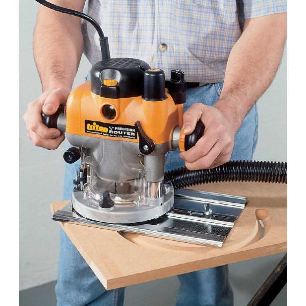 The triton tra001 has a powerful 3. 25 Hp motor, able to handle even the toughest workpieces with the motor running at 8000 -21000 rpm’s. It features a wide range of premium features: easy-set, direct reading, 3-stage turret for precise pre-set cut depths. Single button switches from plunge to fixed-base router with rack and pinion height adjustment. Through base, single wrench, bit change is achieved with automatic spindle lock. Soft start and variable speed lets you select the perfect speed for all cutter types. Micro winder enables continuous fine depth adjustment through the full plunge range. Safety switch shutter locks closed in bit change mode to prevent power-on. Multi-function fence provides excellent control for handheld use and circle cutting. Automatic spindle lock engages only when the power switch is closed. Removable plunge spring allows easy bit adjustment when table mounted. Fully enclosed guarding provides maximum protection from the cut zone. Side air vents reduces intake of dust into the motor casing when mounted upside-down in a router table. Quick access to change worn brushes. Kit includes: 3. 25 Hp router, multi-function fence, a 1/2-inch collet with a 1/4-inch reducer, and collet wrench.
