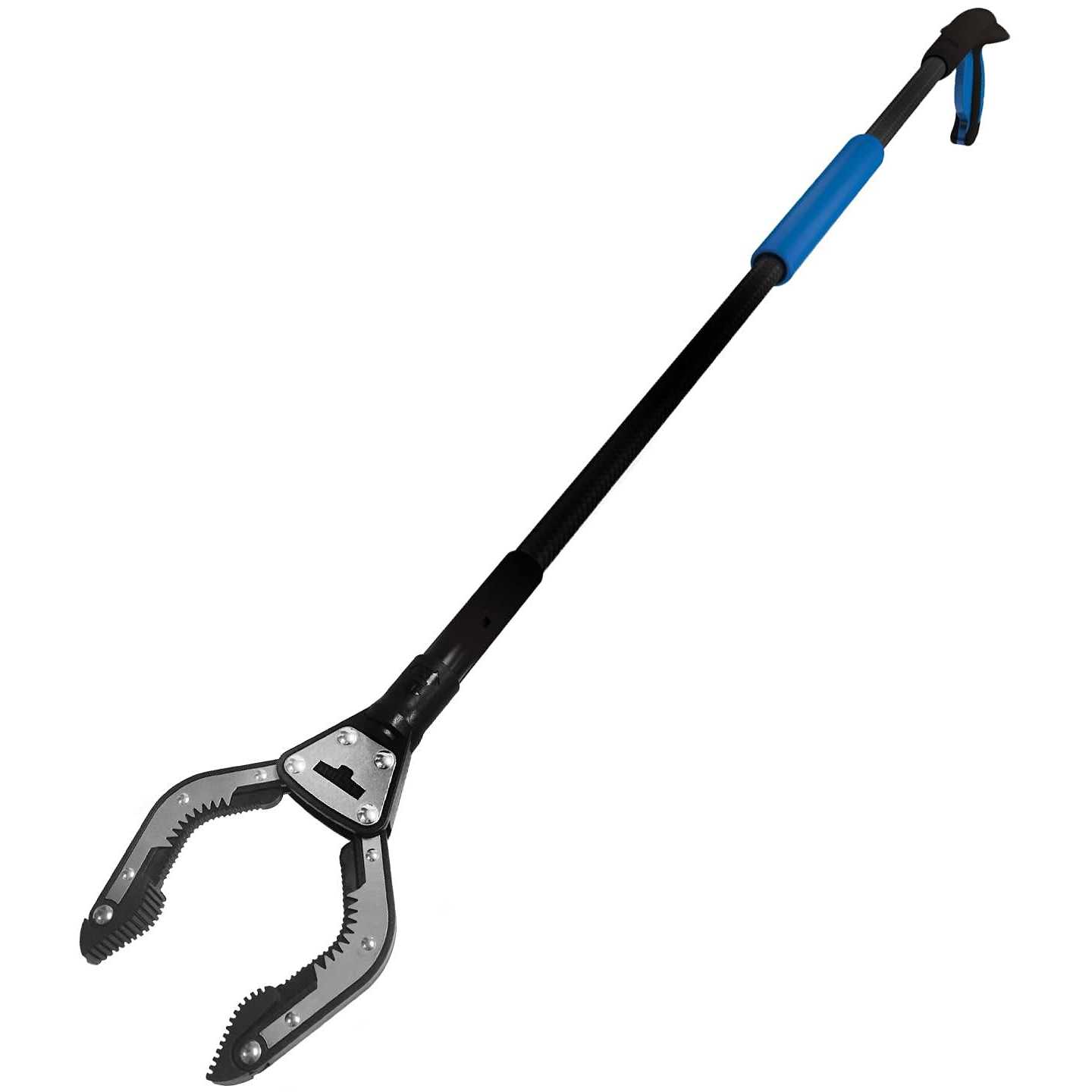 Designed for heavy duty tasks. Ideal for outdoor use. Stainless steel teeth with reinforced rubber give the jaws extra strength to hold items securely. The ergonomic grip provides smooth, trigger-pull action to grab items low or high. A comfort-grip neoprene sleeve gives extra support for two-handed lifting of heavy objects. Head rotates to pick up items at any angle. Powerful steel jaws with reinforced rubber. Powerful steel jaws with reinforced rubber. Comfortable trigger increases gripping strength. Head rotates to pick up items at any angle. Comfort grip neoprene sleeve for 2 handed lifting.