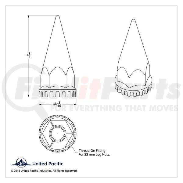 Be the first to review “United Pacific 33mm X 4-3/4 Matte Black Spike Nut Cover”