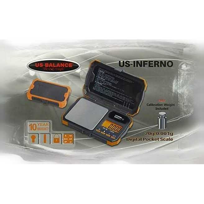 The US-INFERNO digital scale has a rugged design with backlit LCD display and brushed stainless steel platform with Rubberized corners and edges. Six (6) Weighing modes: g, oz, gn, ct, ozt, dwt. Removable lid / weighing tray is included. EasyCal – One Button Calibration. Auto off : 180 Seconds Of Inactivity. Disable Auto Off Option. Overall size: 5.40″” x 3.2″” x 0.8″” . Platform size: 2.75″” x 2.75″” . FREE Calibration mass: 20g Included.”