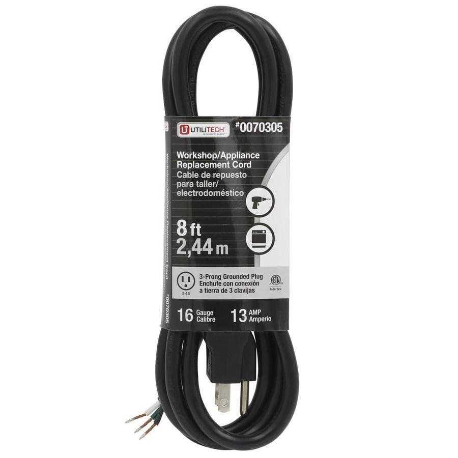 Utilitech 8′ 16/3 3-Prong Black Indoor Sjt Light Duty General Extension Cord UT010608