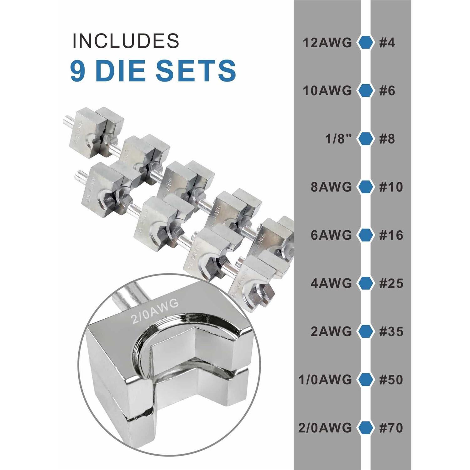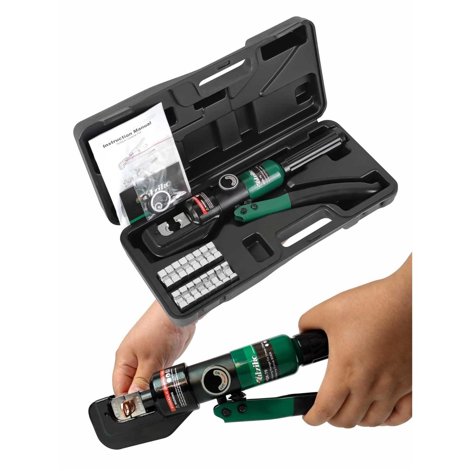 UTZIKO Hydraulic Cable Lug Crimper 10 US Ton 12 AWG to 00 (2/0) Electrical Terminal Cable Wire Tool Kit with 9 Die (12awg~00awg Crimping Tool)
