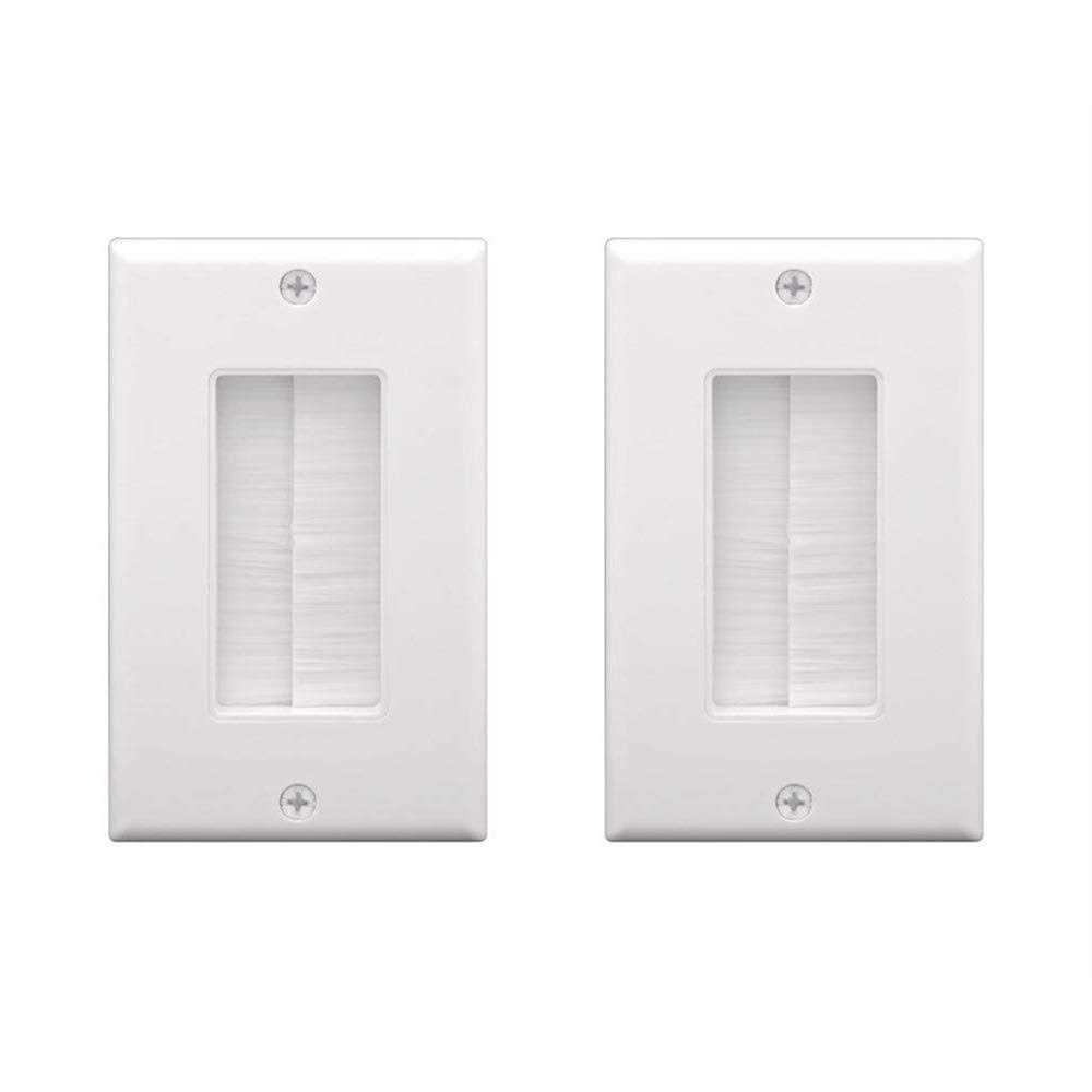 VCE standard size Brush Wall Plate. Equipped with mounting screws and very easy to set up allows you to quickly easily clean cable access from any wall in your home directly to your cable. Works perfect with HDMI cables coax cables speaker wires standard AV audio video cables network/phone cables and more. It runs cables neatly through walls. With UL Listed, just use it without concern. Smooth and clean HDTV Installations, perfect for HDTV cables and home theater installations. Easy set up, Installs in just minutes, Insert the brush into the outer casing and place on the wall. Run your cables cleanly and neatly through the wall,the package is equipped with mounting screws.
