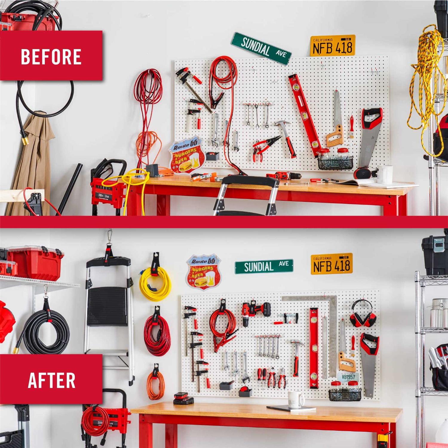 There are few things more frustrating than untangling a wet, dirty 100 ft. extension cord when you are in a rush. VELCRO Brand EASY HANG Extension Cord Straps make it easy to organize even the longest, heaviest extension cord. The rust-resistant grommet slips easily onto a hook and hangs precisely where you need it. With extra-wide webbing and red pull tags, your extension cords zip on and off the straps with ease. With 25 ft, 50 ft. and 100 ft. sized available, the straps are just right for extension cords. And with convenient multi-packs available, you can keep all of your cords organized and accessible at a moment’s notice. So what are you waiting for. Get that garage, shed, basement, tool closet organized. Your well-ordered extension cords will be the envy of the neighborhood. Just 1 more innovation to make your life easier and more organized.