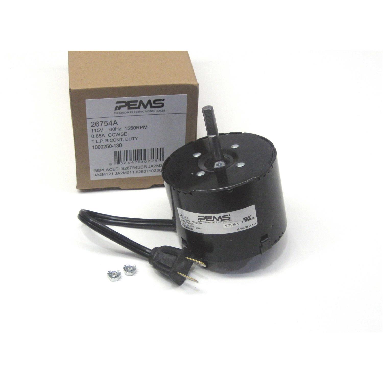 Pems Vent Fan Motor # 26754A JA2M121 Replaces Nutone 26754; 1500 RPM0.85 amps115V 60hz.1500 RPM0.85 AMPS115V 60hz.Rotation CCW813 Shaft Size 5/16″ x 1 1/2″2 Prong Plug CROSS REFERENCES: Replaces NuTone 810811819848850851N8110813081508170819084908510NF10NF9 ventilation fans. JA2M121NJA2M121AA2E029FAA2M080F118-009118-013118-11317-01618-015AK4H05AAK4K36AAK4K36B3136LS26754SER31363241329282537102308254110330118-01617-01618-01518-300AA2E029AA2M080AK4H142AAK4K19AAL4K36ABA2F008JA2M011JA2M357JA2R009JA2R108JB2M0131078510873120331439517006170071775623100267352675426755 .