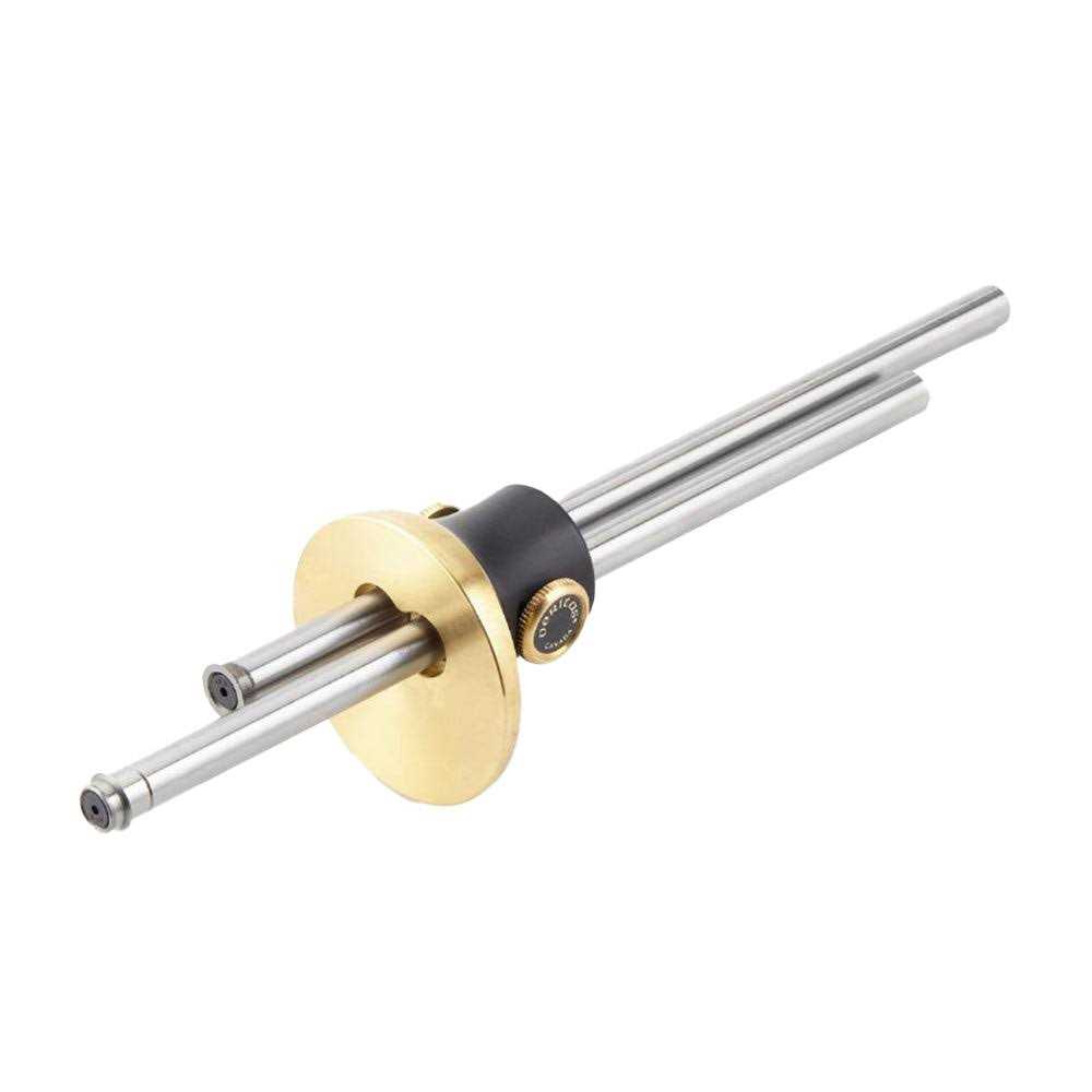 With two independently adjustable rods, this gauge can scribe both sides of a mortice at once. The length of each ground stainless-steel rod is very precise. By registering the tails against either side of a chisel, you can set the cutters to span the exact width of the chisel blade. Projection is easy to set, an internal O-ring keeps light but constant friction on each rod; a thumbscrew locks the setting. One rod has its cutting edge at the extreme end of the rod, making it useful for transferring dimensions or as a depth gauge. As with all Veritas marking gauges, the wheel cutters avoid the problems of wandering that can occur with pin-style marking gauges. They cut wood fibres rather than tear them and they mark cleanly, even on cross grain. These hardened steel wheel cutters scribe perfectly at any point of their circumference. They are oriented with the cutting bevels facing in opposite directions, so you can always mark your line with the bevel facing the waste side of any cut. Each cutter is fully retractable for safe storage or to permit use with a single cutter. The rods project off-centre from the anodised aluminium body, which helps the gauge resist rolling on a workbench and maximises the area of the 50mm diameter brass face that can register against the work piece. 190mm overall length, the gauge has a setting range from zero to 145mm. The aluminium housing has a brass face and the rods are stainless steel. Made in Canada.
