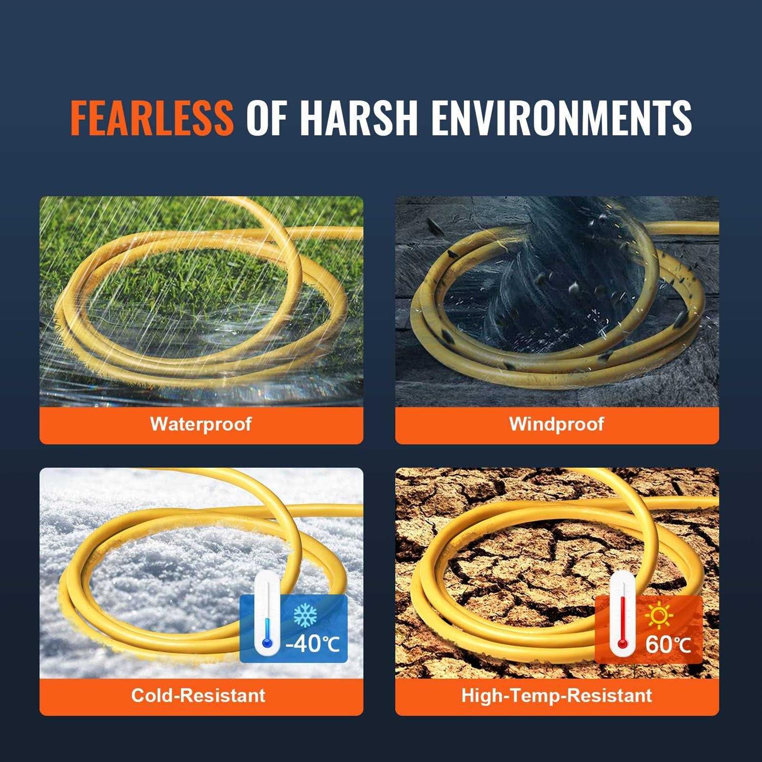 Max. Load 1875W: Our generator extension cord supports loads up to 1875W (125V/15A). 100% all-copper cable conducts electricity faster and more consistently for heavy-duty power tools such as circular saws and grinders. Strong Weather Resistance: The 25-foot generator power cord is both functional and practical. The thickened PVC-wrapped surface is waterproof, wear-resistant, and can be exposed to sunlight for a long time. Remains flexible and works uninterrupted in extreme climates ranging from-40°C to 158°C. Clear LED Indicator: The female end of the heavy-duty generator extension cord is equipped with an LED indicator to show the power on condition at a glance. The eye-catching yellow color makes it easy to find even at night, significantly reducing the risk of touching in the dark. ETL Security Certification: The generator electric cord is ETL certified, and you can use it with confidence. The generator cable has passed the bending test and 2500V high voltage test before shipment to ensure you can use it securely after receiving it. Designed for Generators: The 25-foot long heavy duty outdoor extension cord with 15A NEMA 5-15P male plug and 15A NEMA 5-15R female plug provides you with a more convenient power supply over long distances, whether for home or outdoor use.