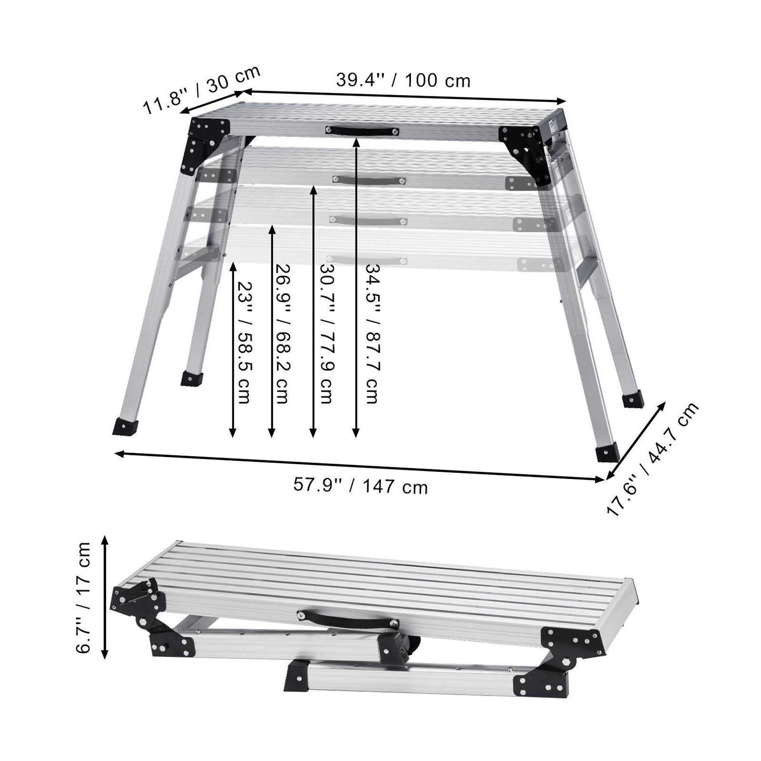 VEVOR 330 lbs Work Platform, 23-34.5 inch Height Adjustable Folding Aluminum Drywall Ladder, Non-Slip Work Bench w/ Portable Ha