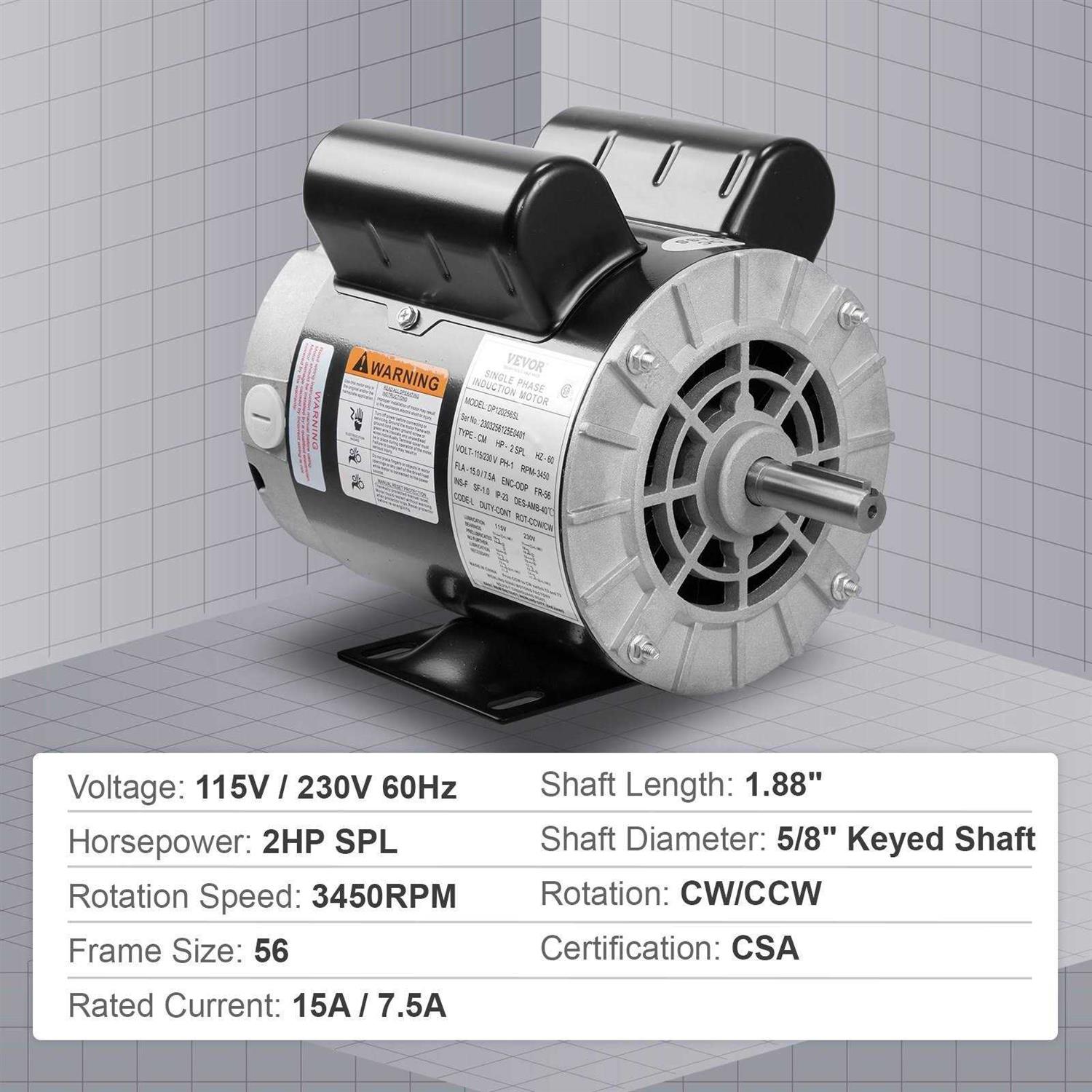 2HP SPL Air Compressor Motor: 2HP SPL 3450 RPM, Single Phase, Full Load Amps: 15.0-7.5A, 115/230V, 2 Pole. Open Drip-proof: Suggest using in clean and dry environments. Made of high-quality steel material, it can protect the engine, longer service life. Dual Rotation Direction: Motor is Reversible for CW/CCW, provides easier wiring operations. Safe & Durable: Tested with CSA certification. A rolled steel shell, fast heat dissipation and compatible keyed shaft for longtime usage.