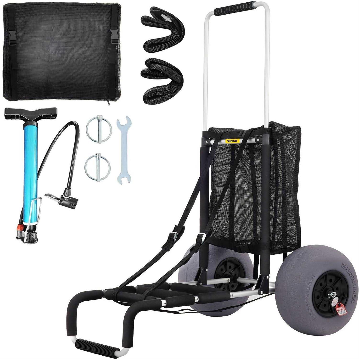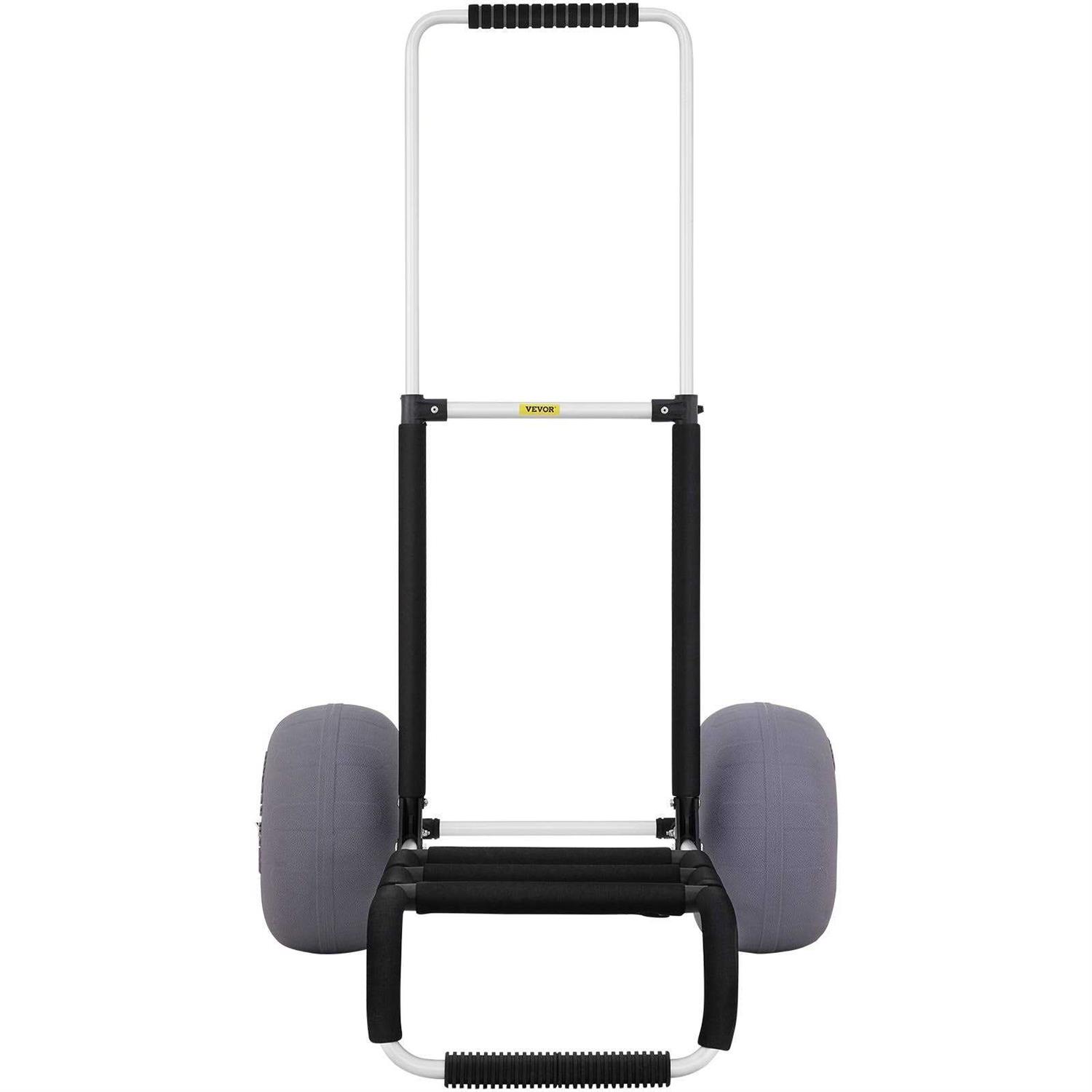 VEVOR Beach Carts for Sand Cargo Deck TPU Balloon Wheels 165lbs Loading Folding Sand Cart Adjustable Height – Black