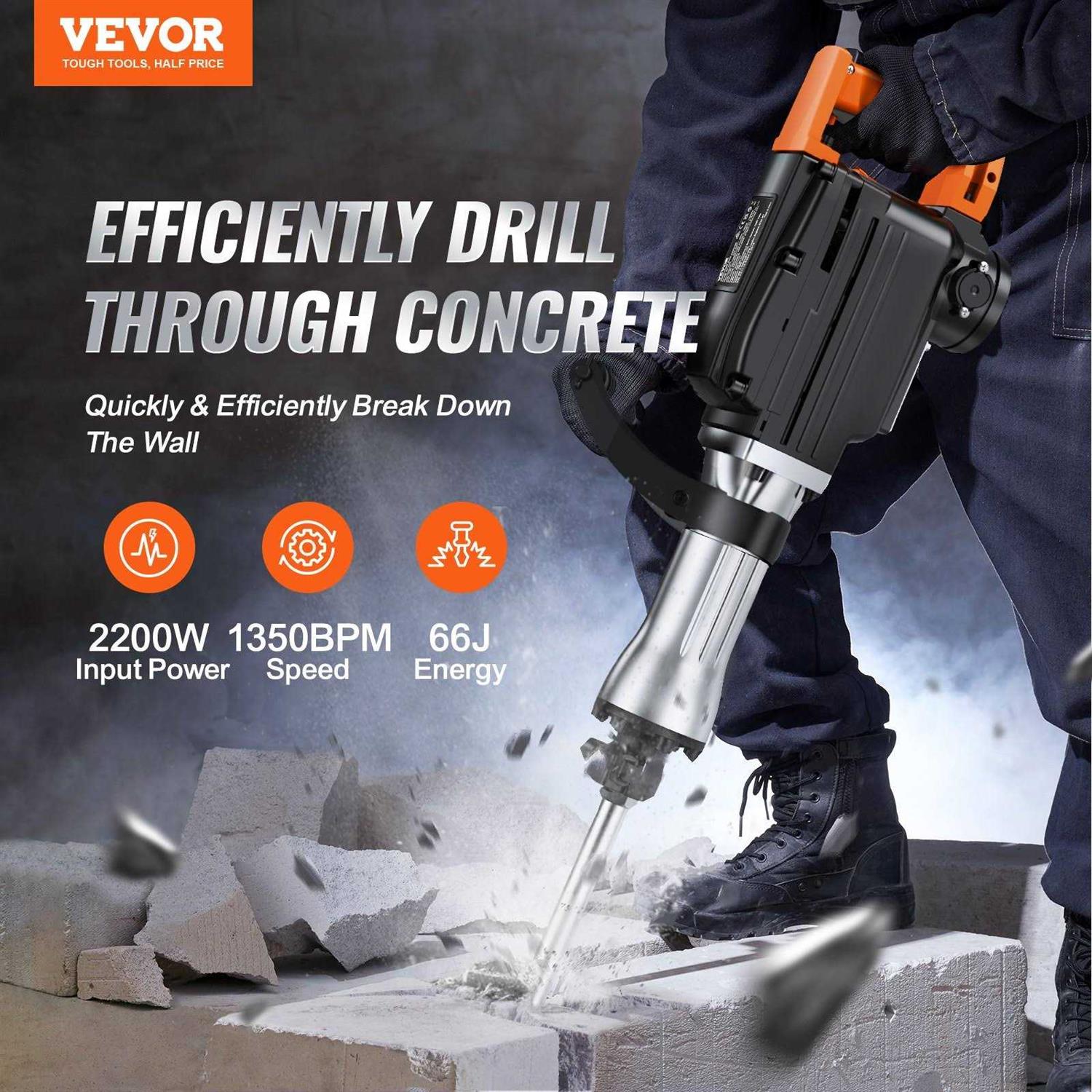 VEVOR Demolition Jack Hammer 2200W Electric Heavy Duty 1350 BPM Concrete Breaker