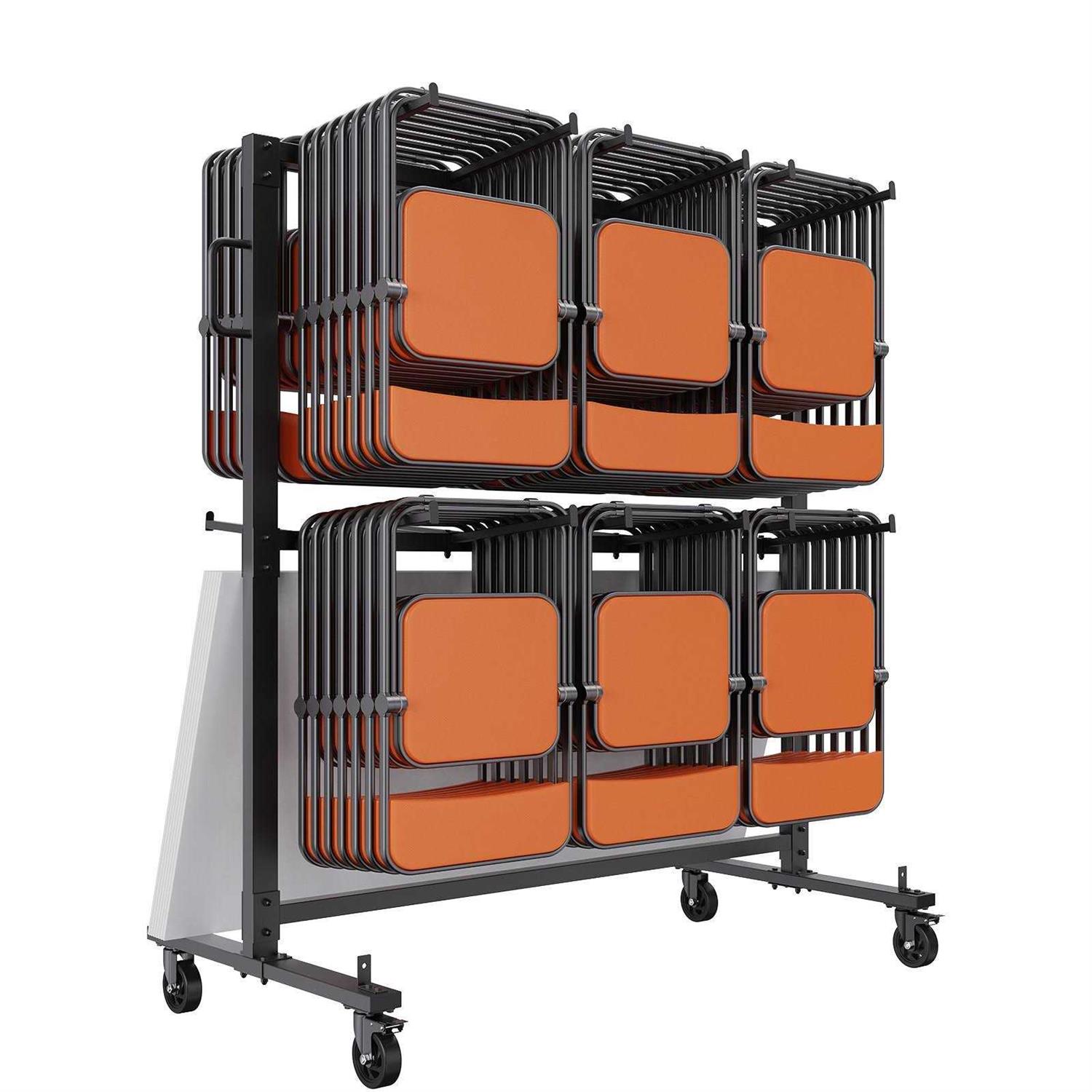 VEVOR Folding Chair Cart Double Layer Mobile Stackable Chair Dolly Storage Rack Trolley with 530 lbs Capacity to Store 84 Chairs Heavy Duty Iron