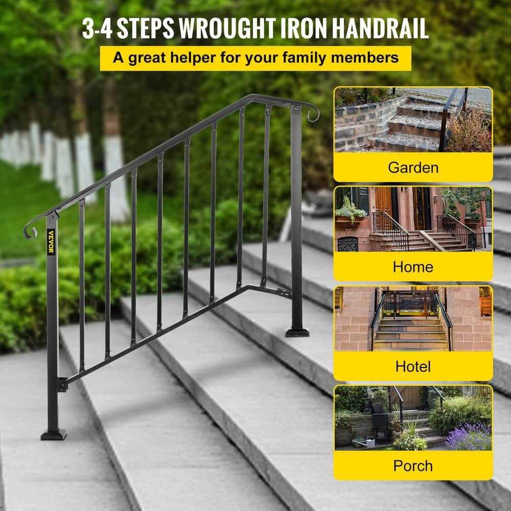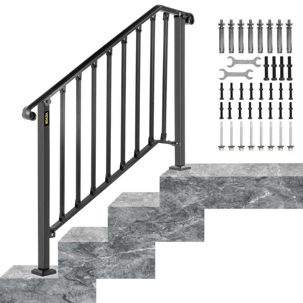 VEVOR 3 ft. Handrails for Outdoor Steps Fit 3 or 4 Steps Outdoor Stair Railing Wrought Iron Handrail with Baluster, Black